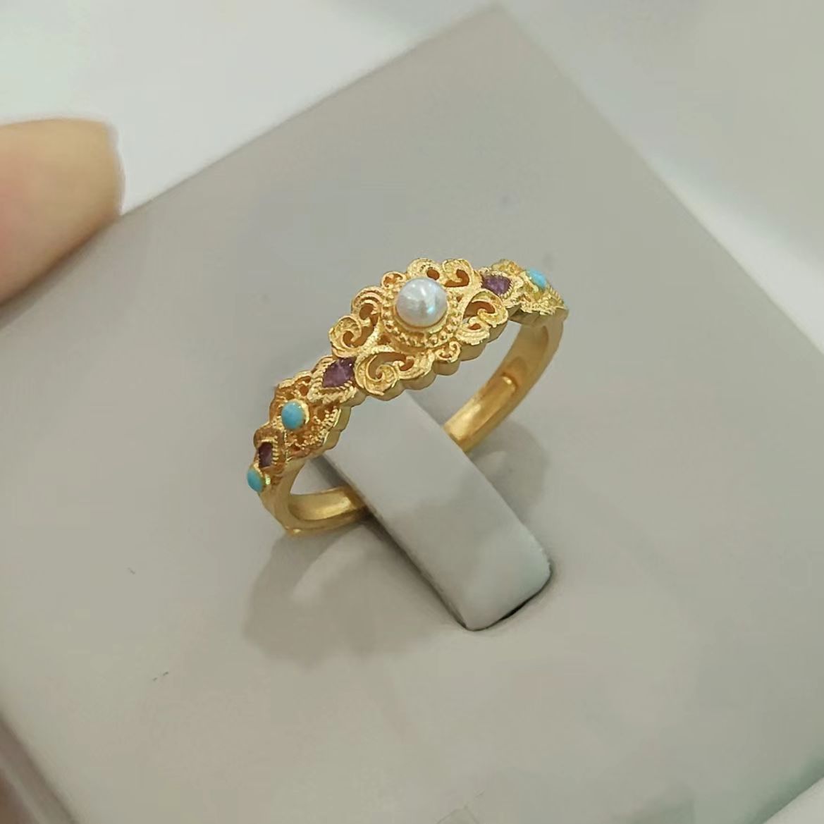 红楼梦系列戒指新中式国风美学马卡龙色的鎏彩可调节指戒女