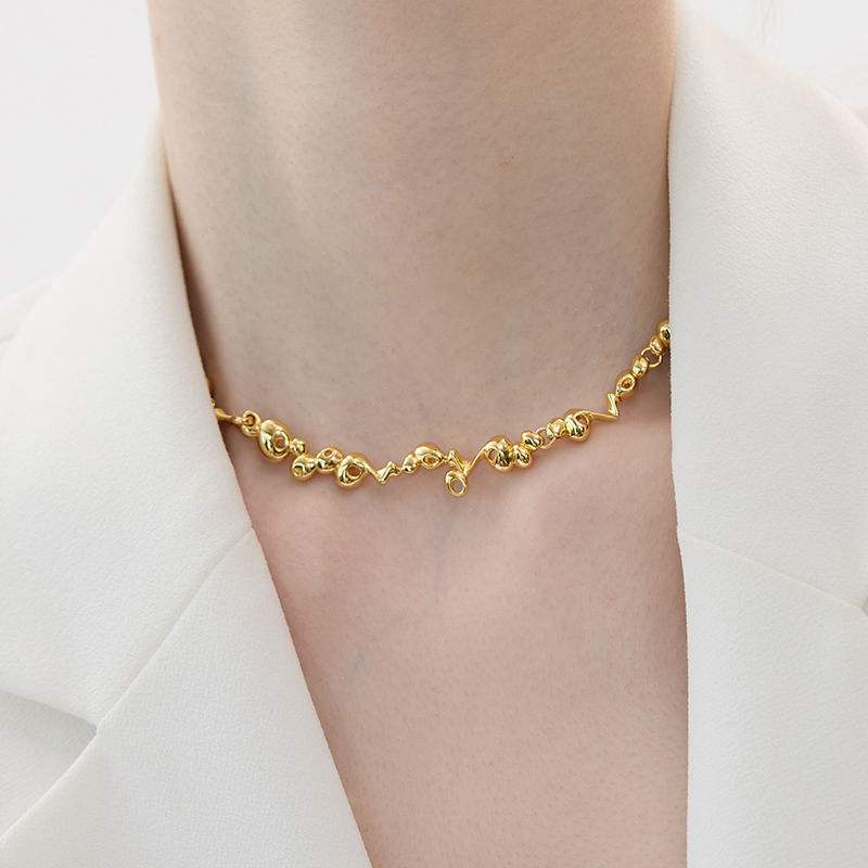 欧美时尚范轻奢几何拼接款项链百搭简约高级感锁骨链小众卫衣素链