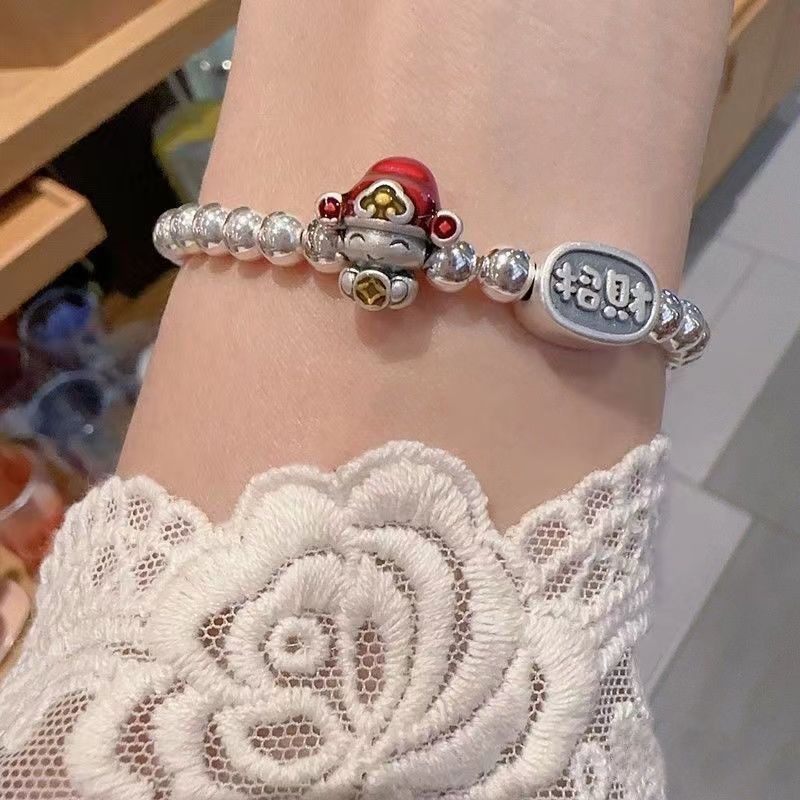 财神爷招财纳福手链简约百搭国潮复古手串可爱新中式手饰品