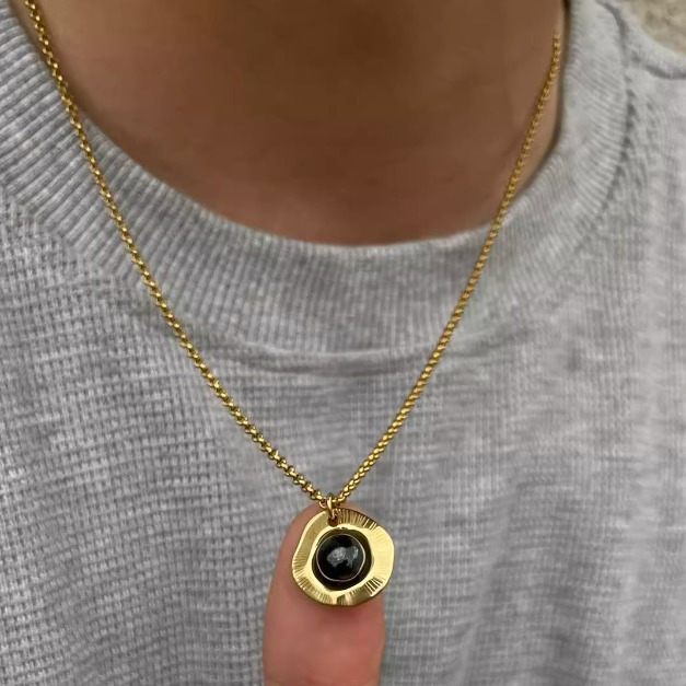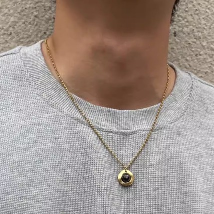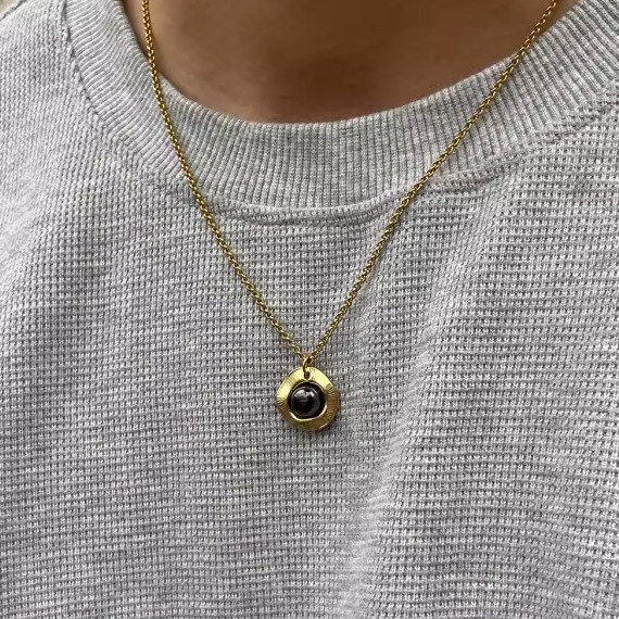 潮流前线几何圆形锆石吊坠项链个性情侣款卫衣链独特简约时尚颈链