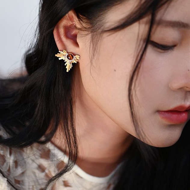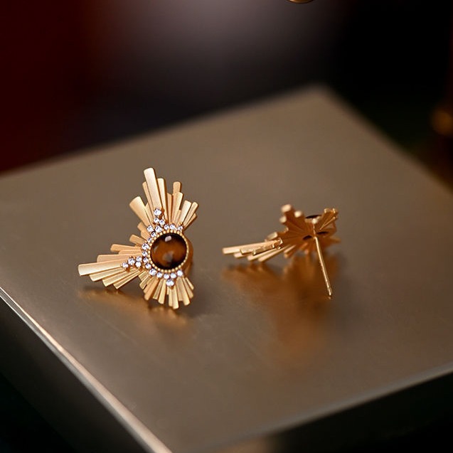 《飞鸟集》法式天然虎眼石耳钉时尚高级感复古耳环轻奢时尚耳饰品