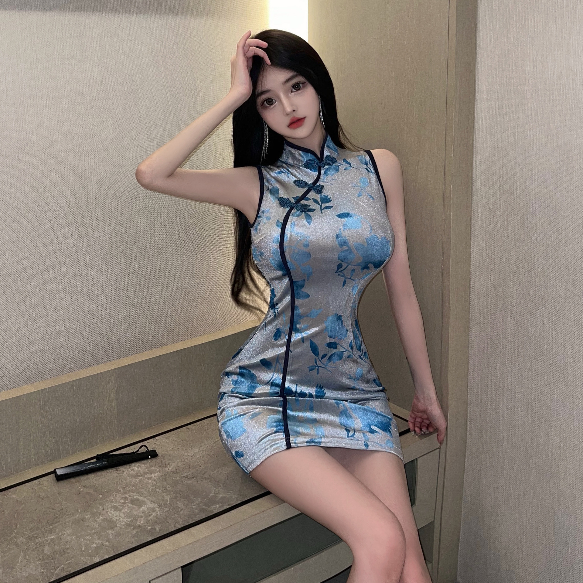 中式设计感改良旗袍无袖连衣裙性感纯欲国风气质收腰开叉包臀短裙
