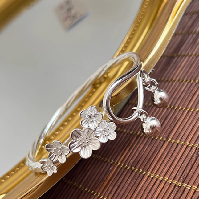 梅花铃铛手镯「梅花三弄」新国潮小众手环高级感银色镯子轻奢手饰