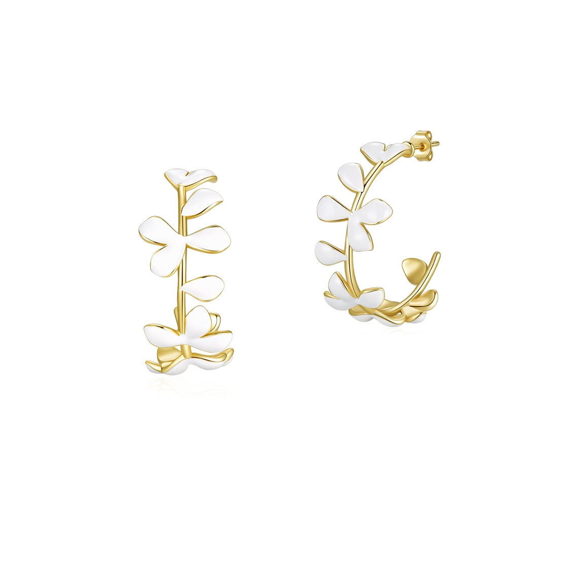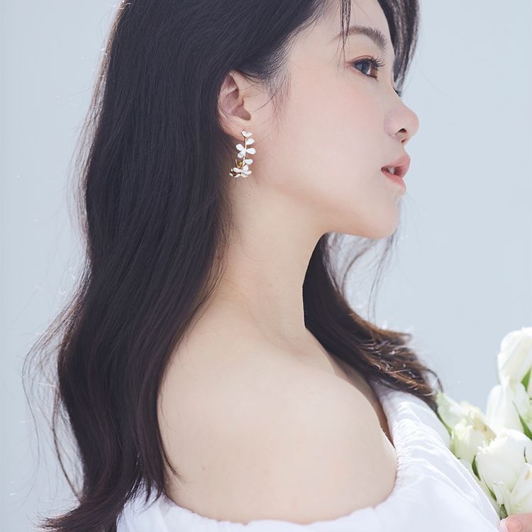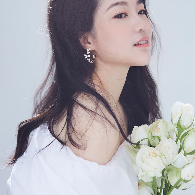 白珐琅玉兰花大耳圈百搭简约时尚耳钉轻奢优雅高级感耳钉通勤耳饰
