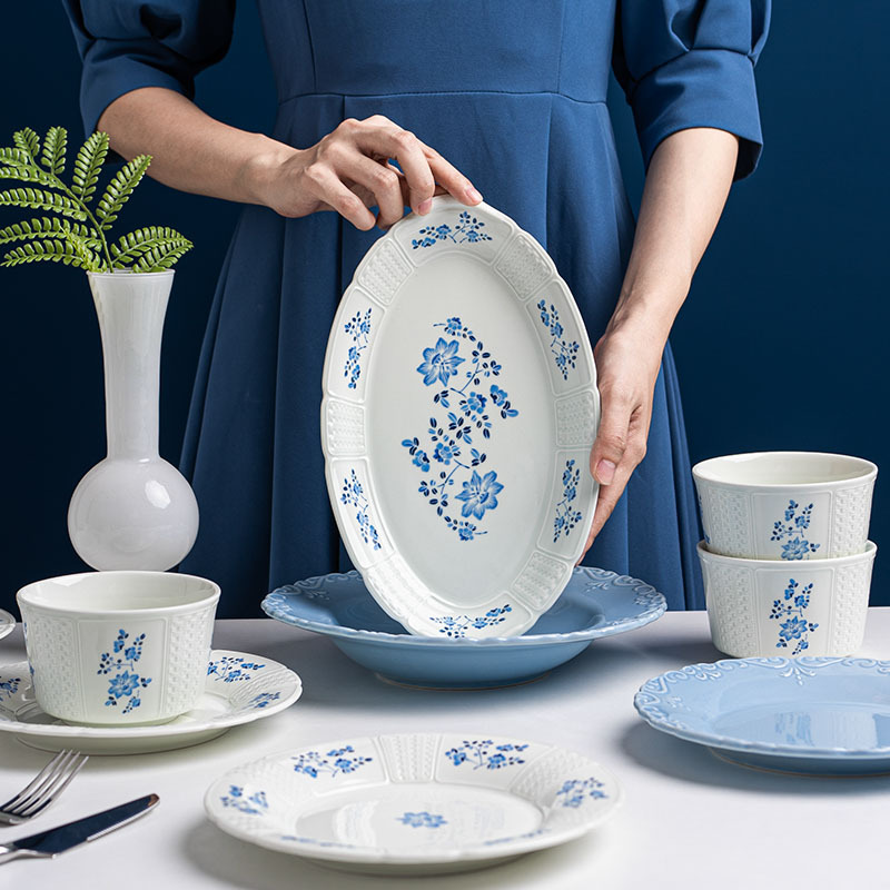 藤编新中式餐具套装碗碟家用釉下彩碗盘新款碗筷新婚入宅礼物