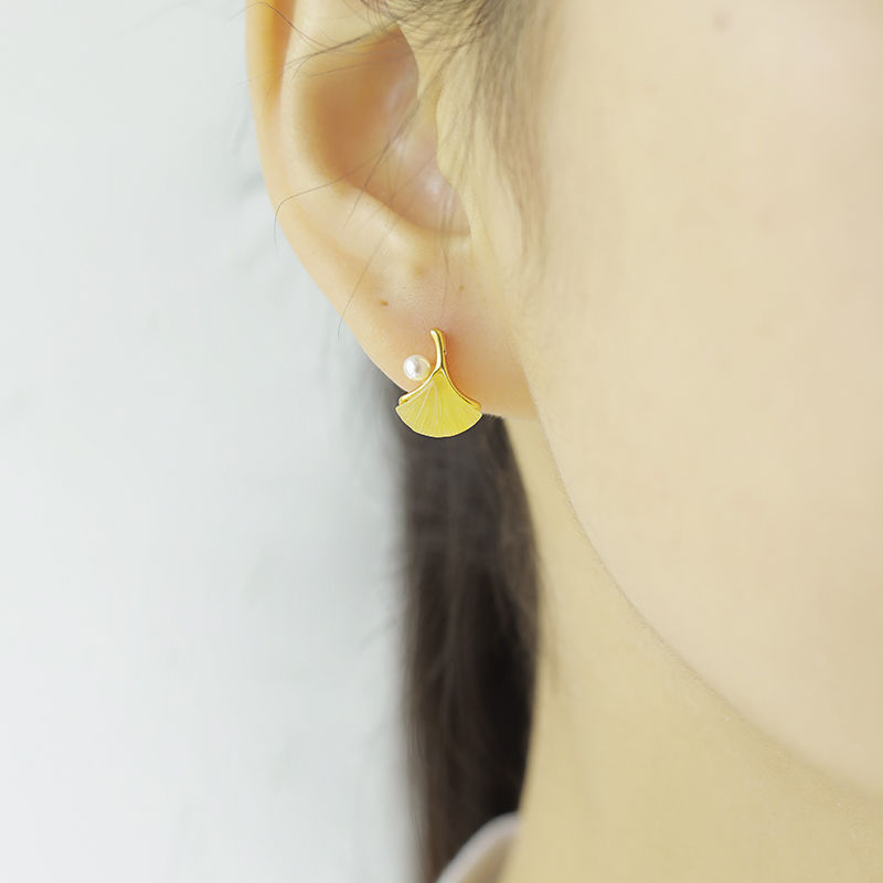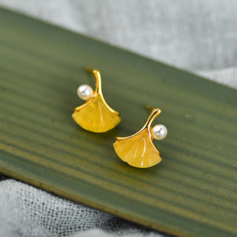 【银杏叶】文艺复古耳钉气质优雅耳环黄蜜蜡耳饰轻奢百搭时尚耳坠