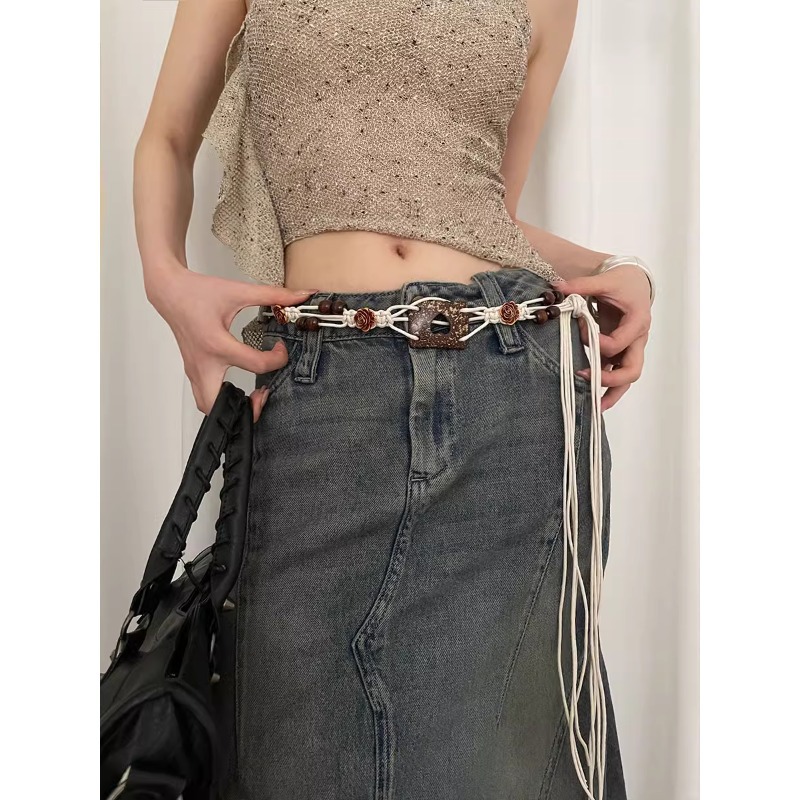 复古民族风腰带女干枯玫瑰设计感裙子连衣裙配饰编织爱心镂空腰绳