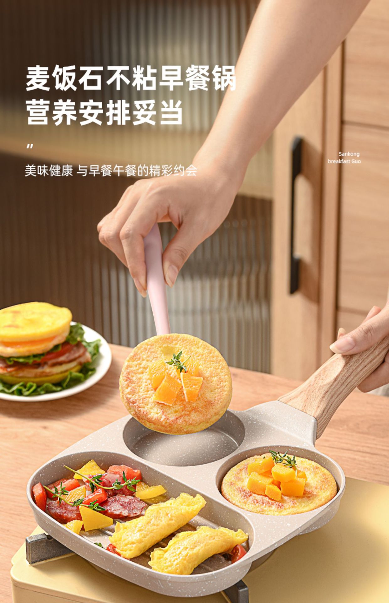 鸡蛋汉堡煎锅麦饭石不粘锅三合一平底锅电磁炉通用迷你煎蛋锅