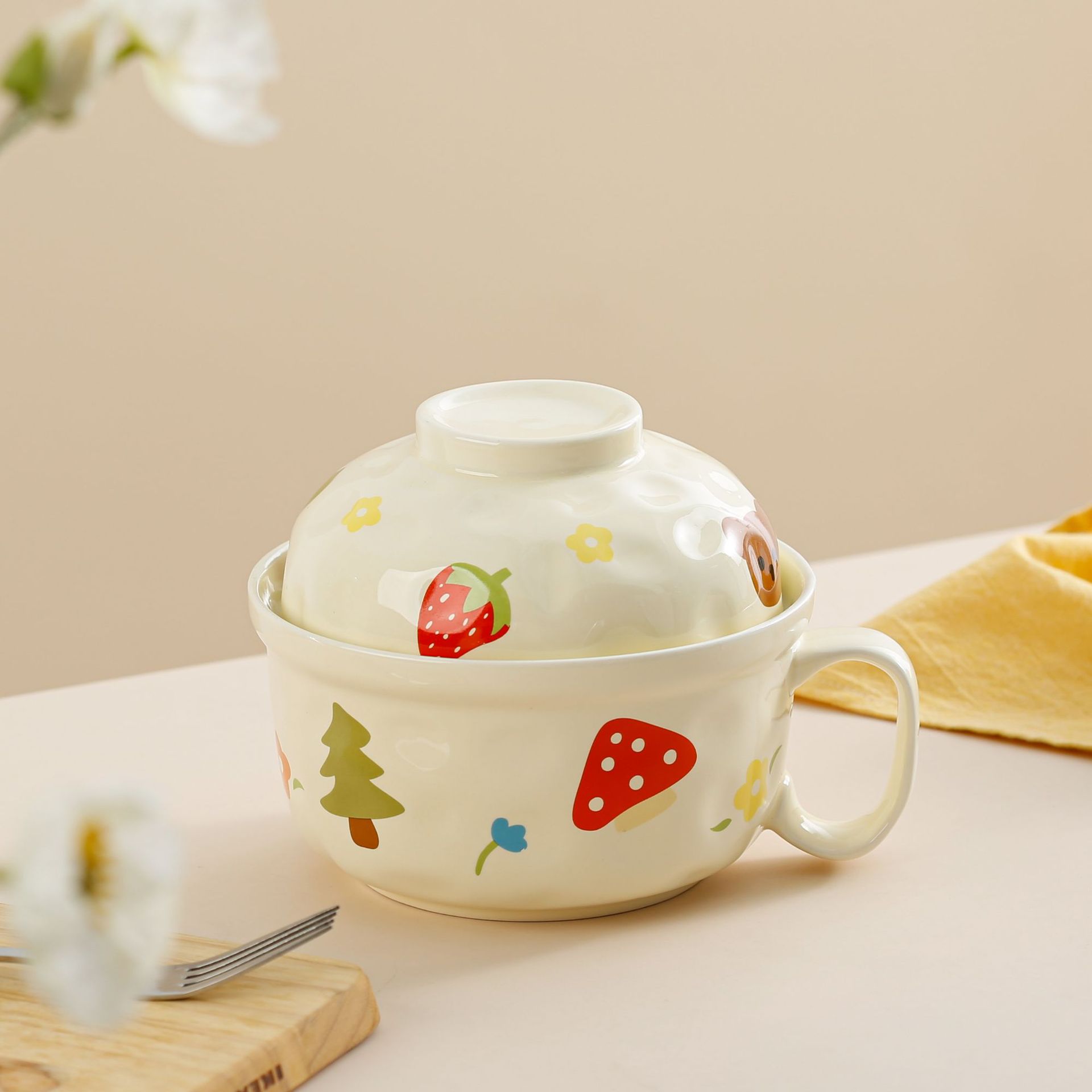 泡面碗带盖带手柄学生宿舍陶瓷方便面碗食堂饭碗大容量汤碗
