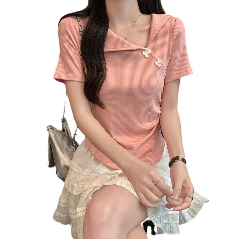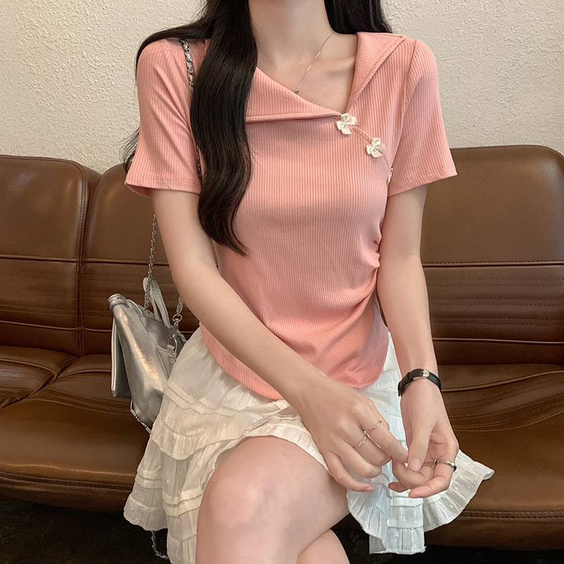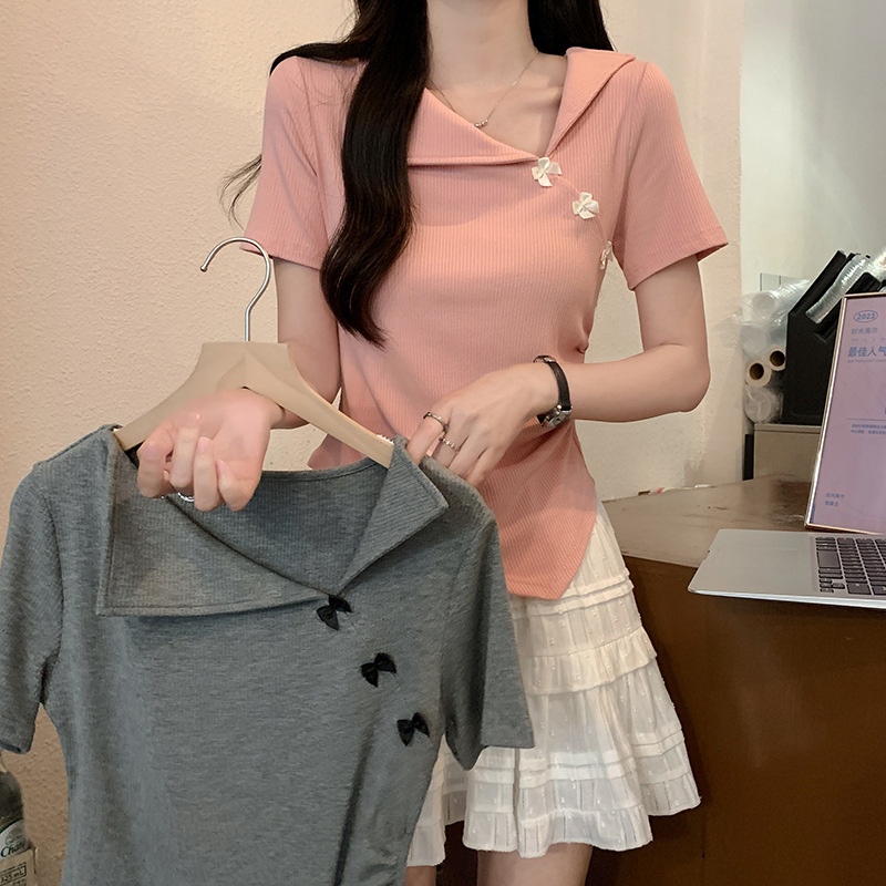 美式复古高级感灰色针织衫短袖t恤女夏季修身显瘦名媛气质上衣潮