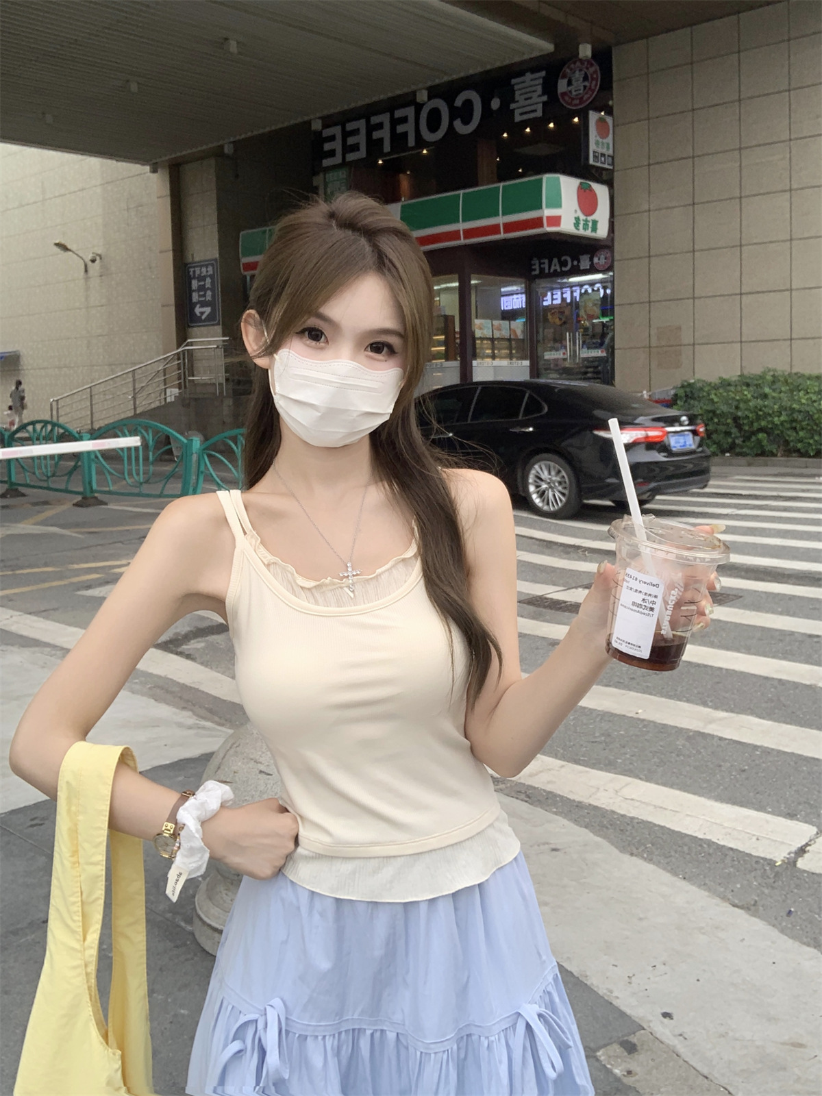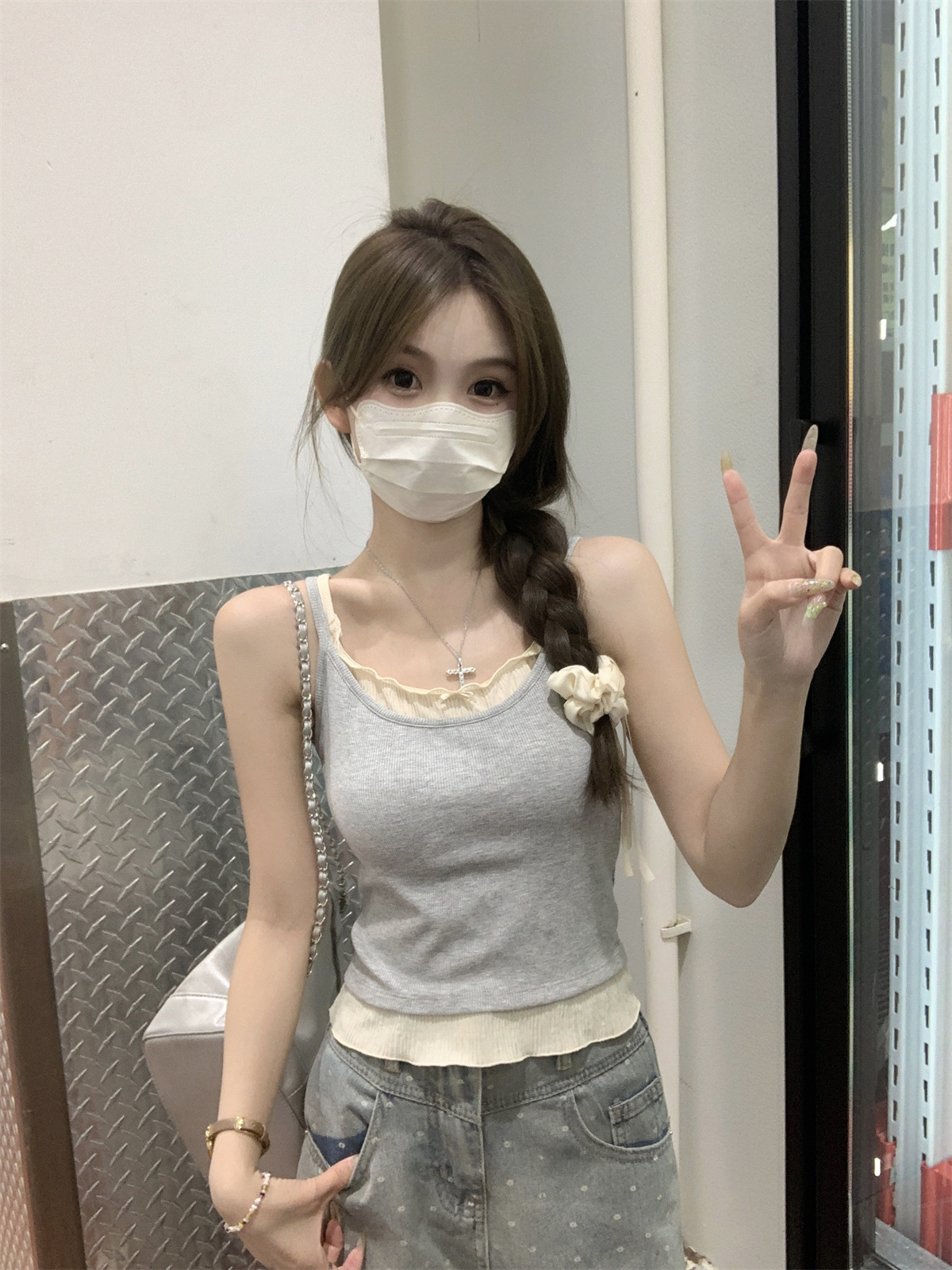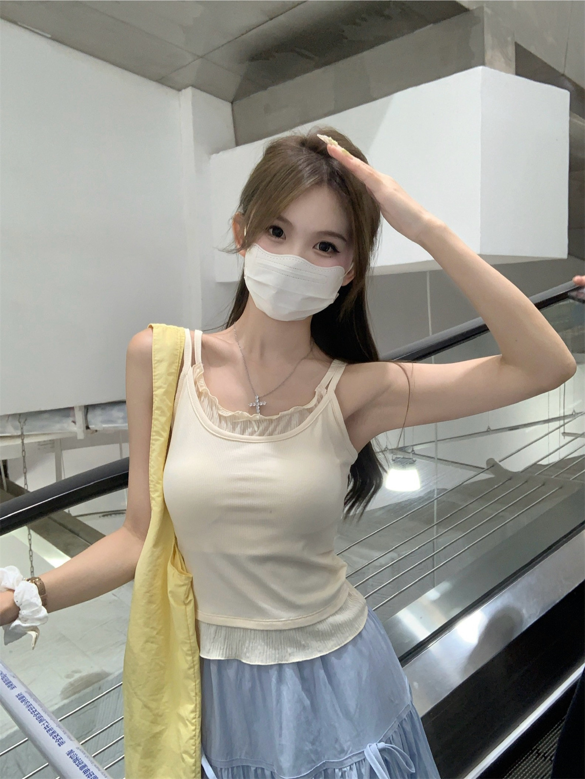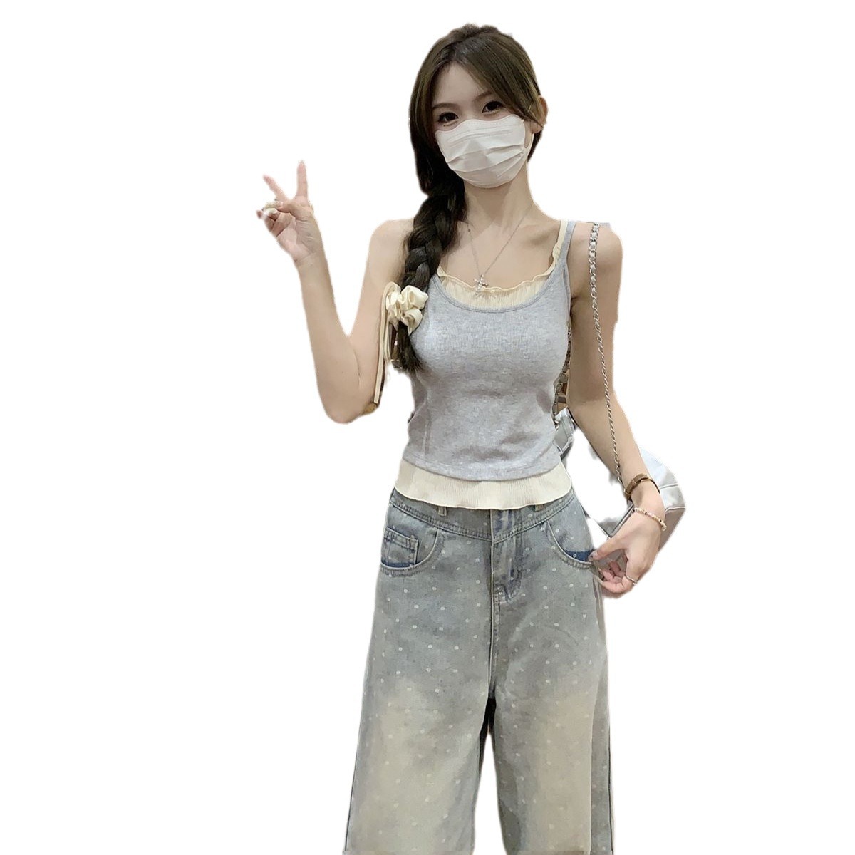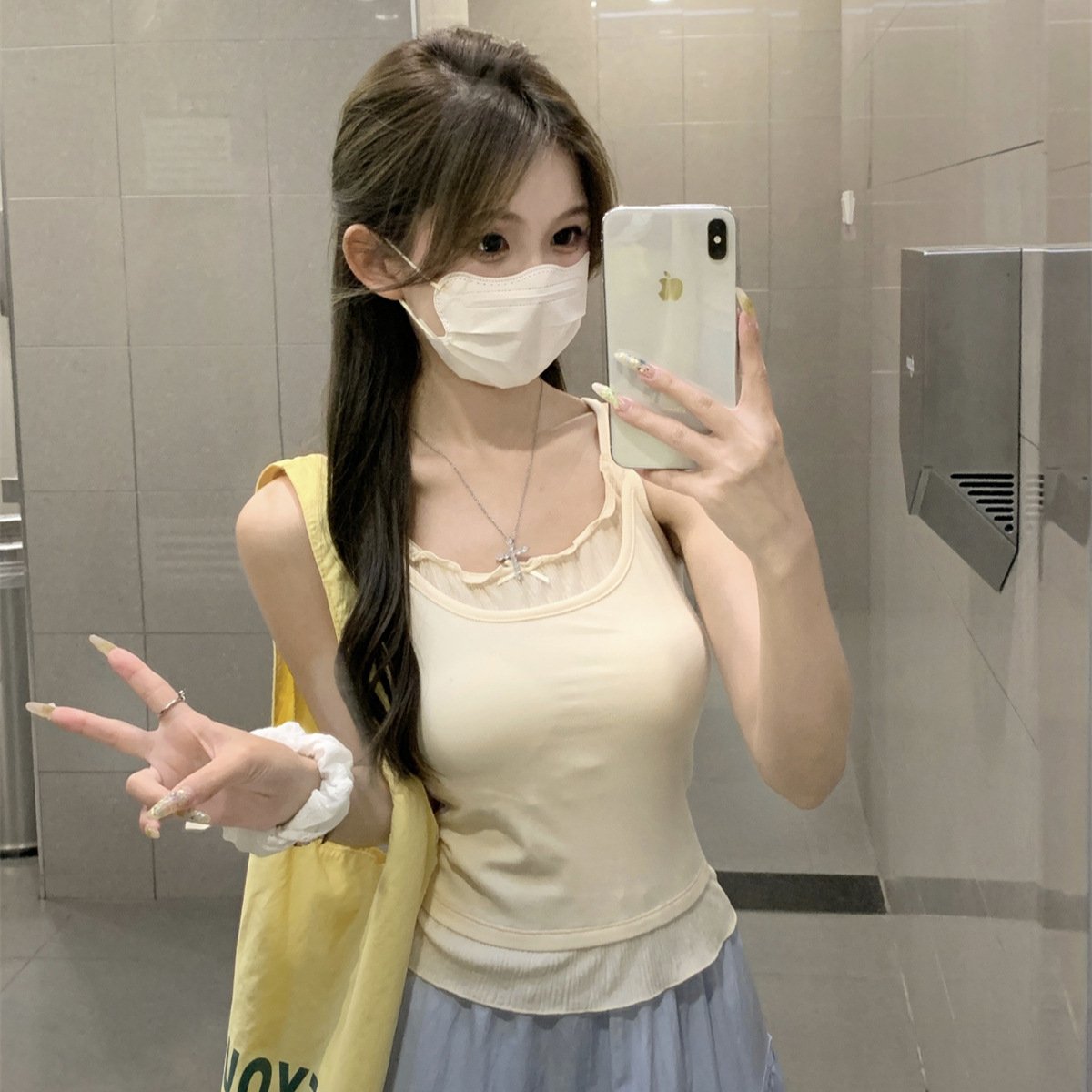 纯欲风假两件吊带背心女夏季新款小众设计感修身显瘦短款上衣欧货