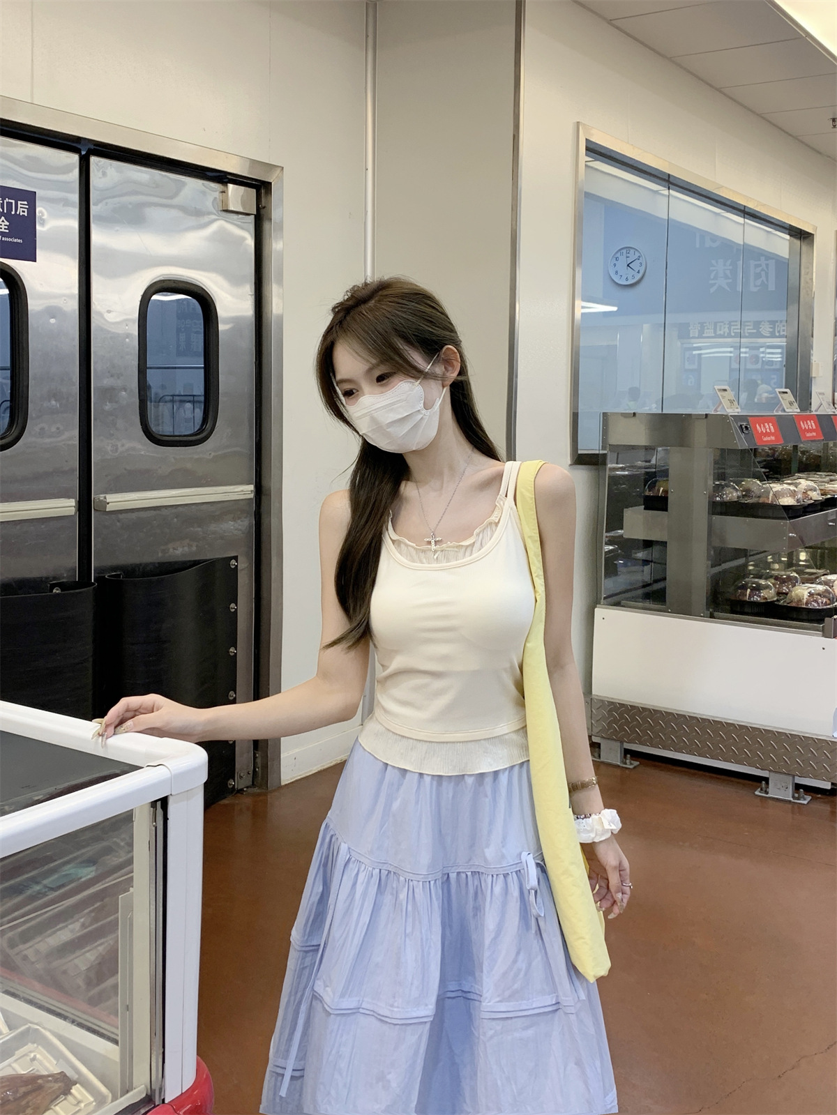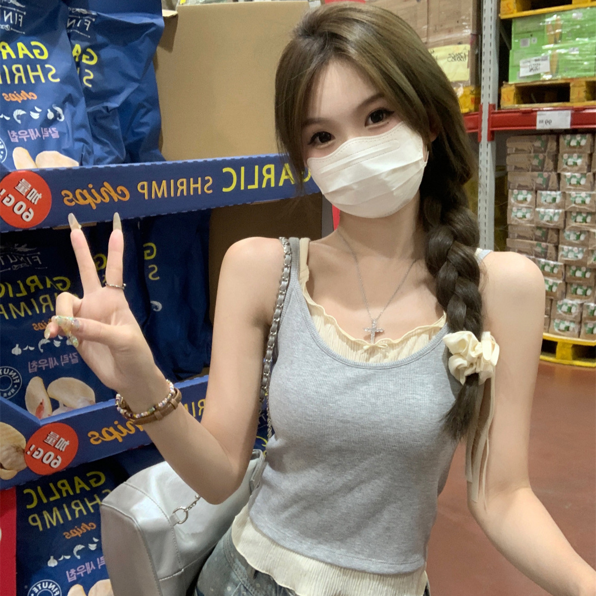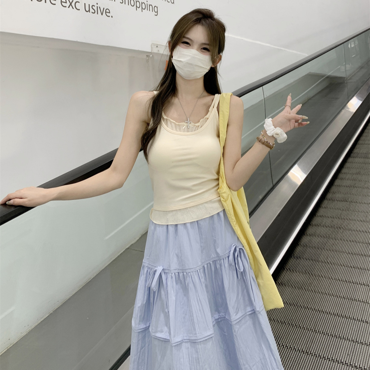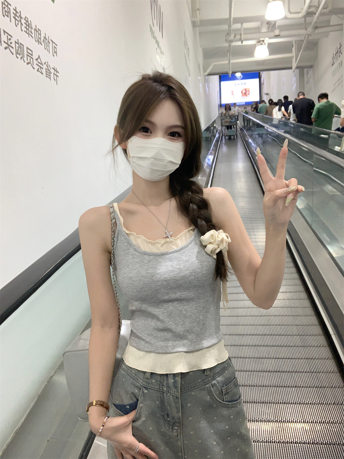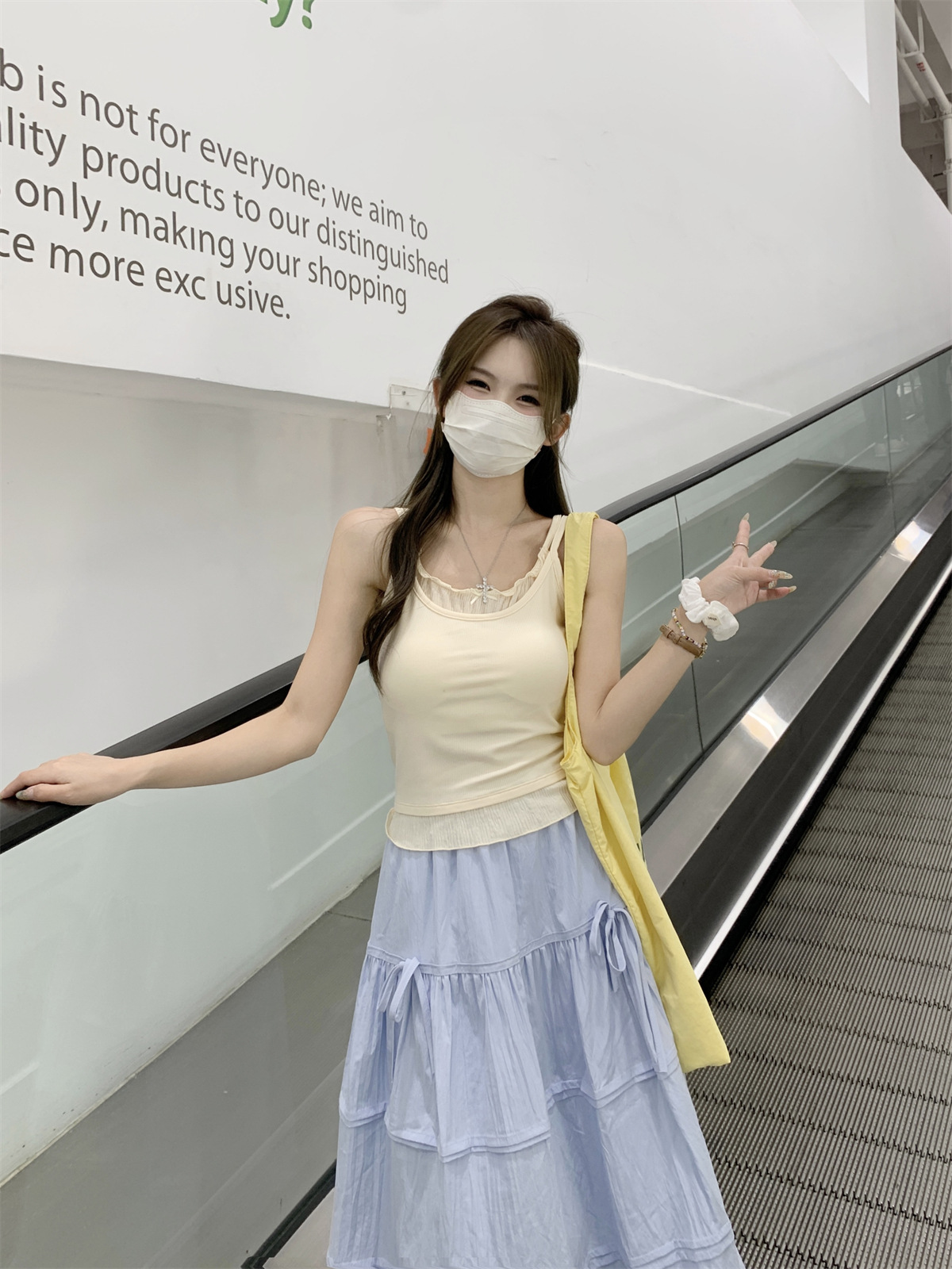 纯欲风假两件吊带背心女夏季新款小众设计感修身显瘦短款上衣欧货