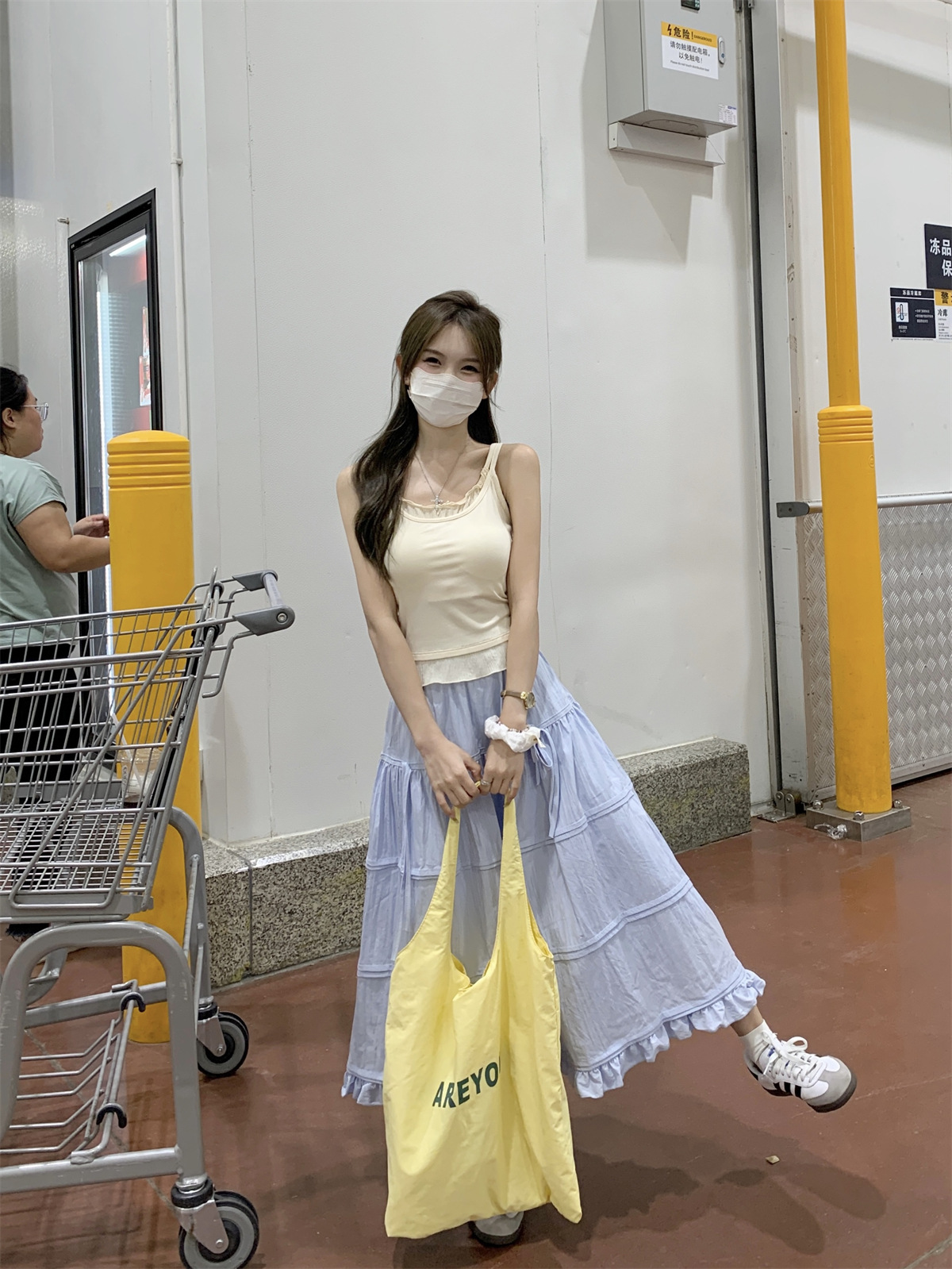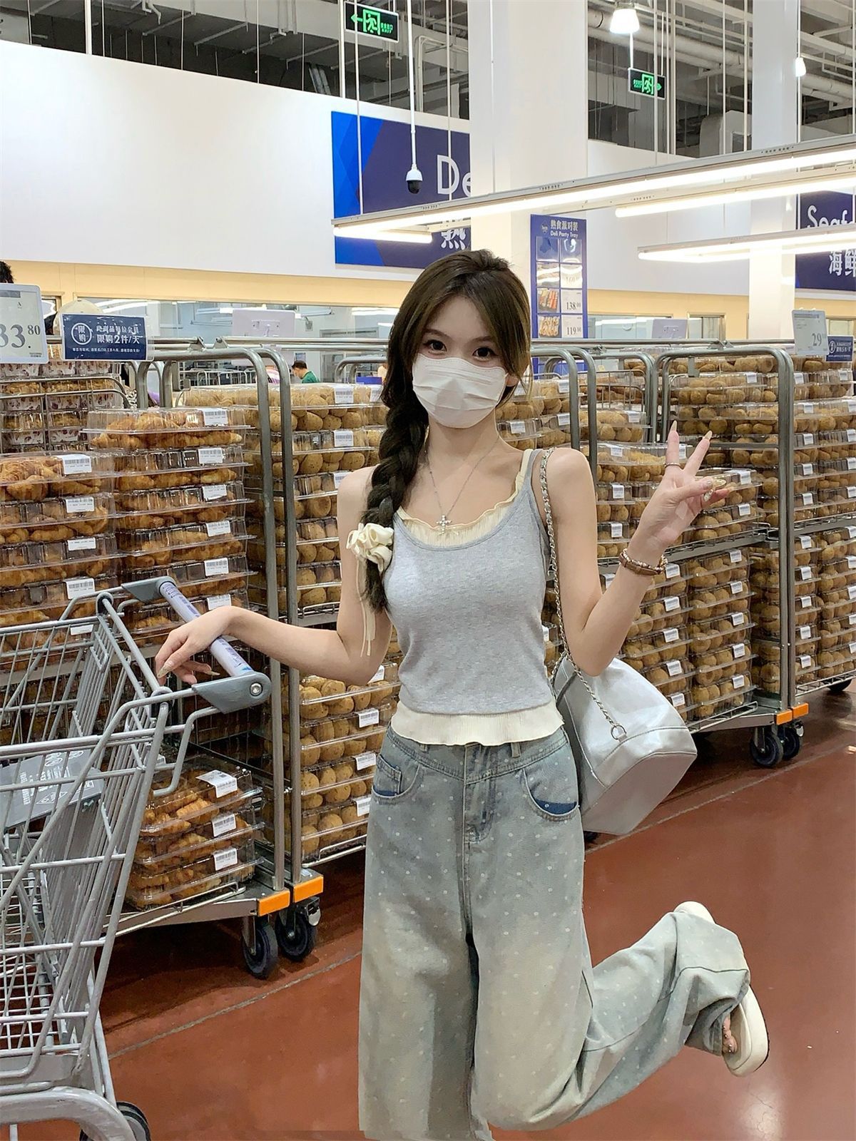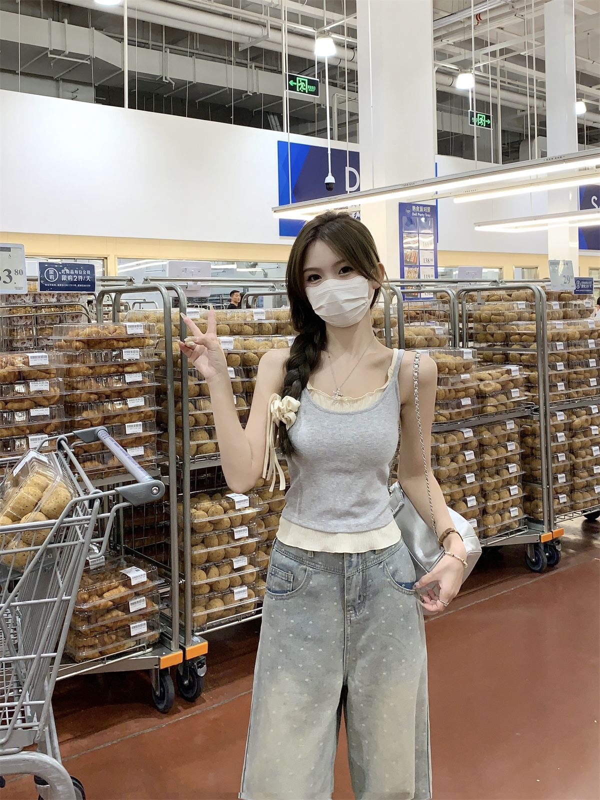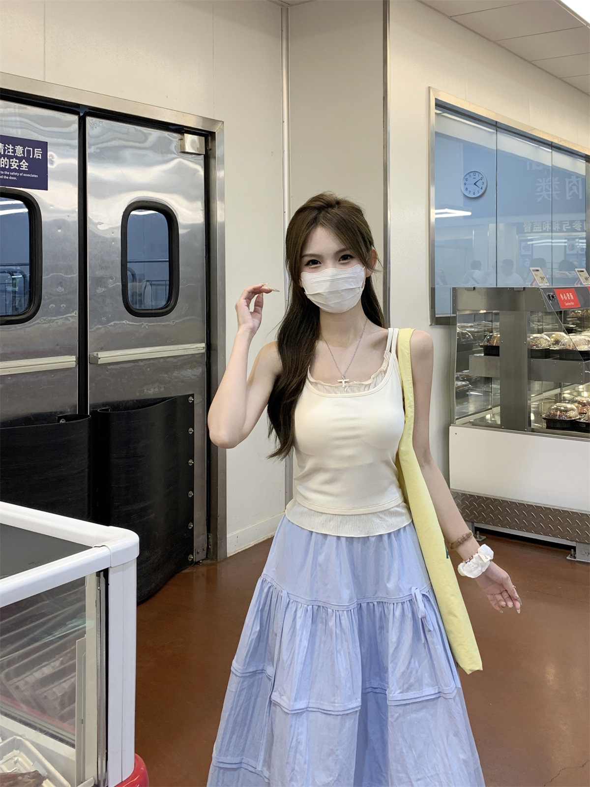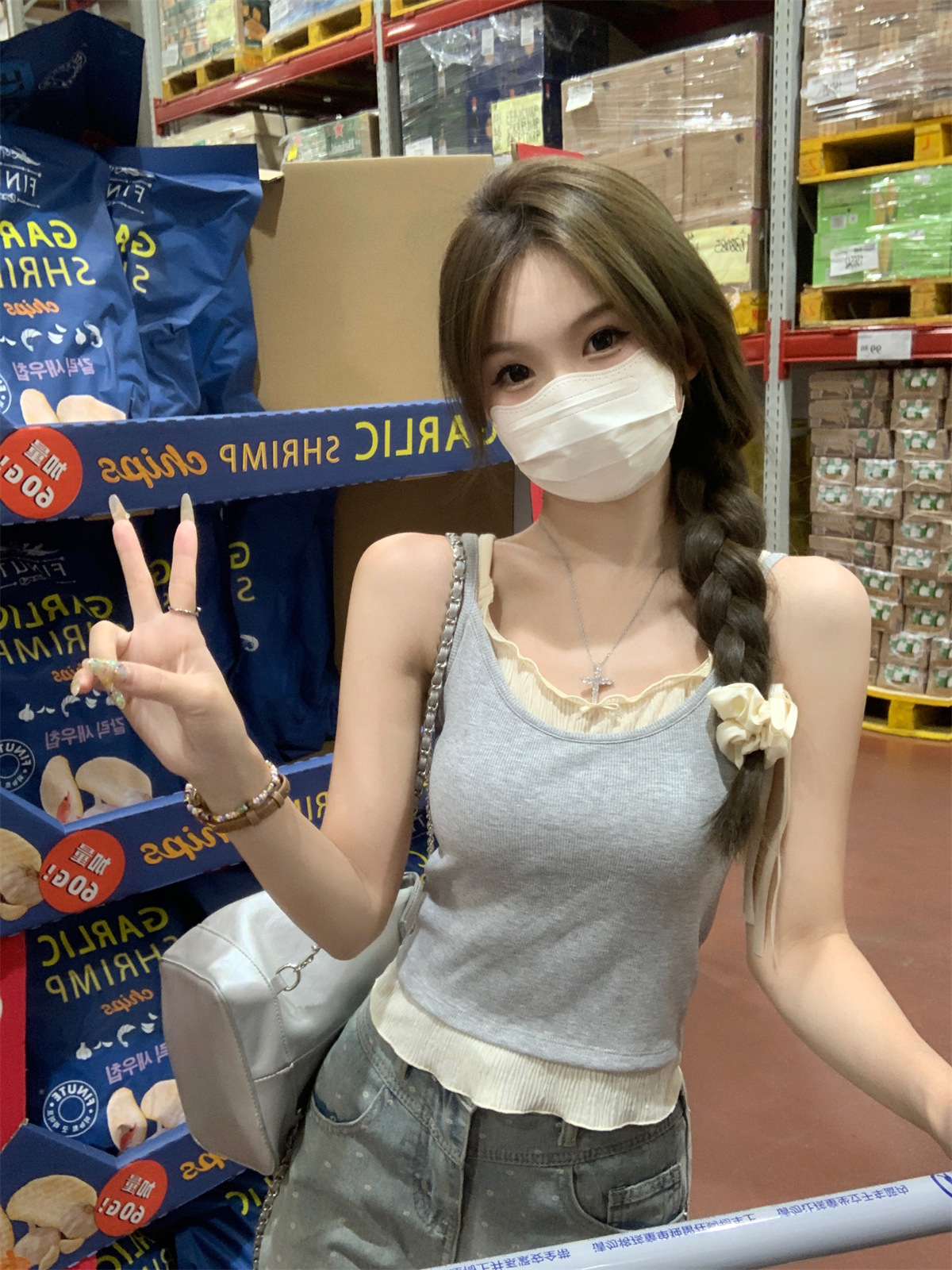 纯欲风假两件吊带背心女夏季新款小众设计感修身显瘦短款上衣欧货
