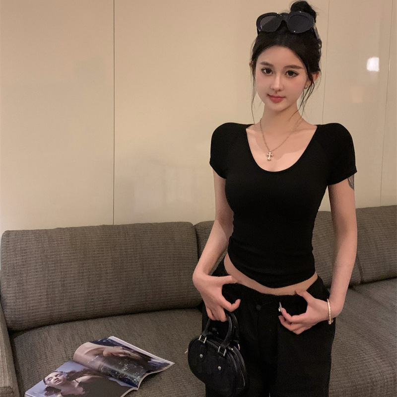 方领T恤女装夏季韩版新款辣妹风设计感修身显瘦短款短袖上衣