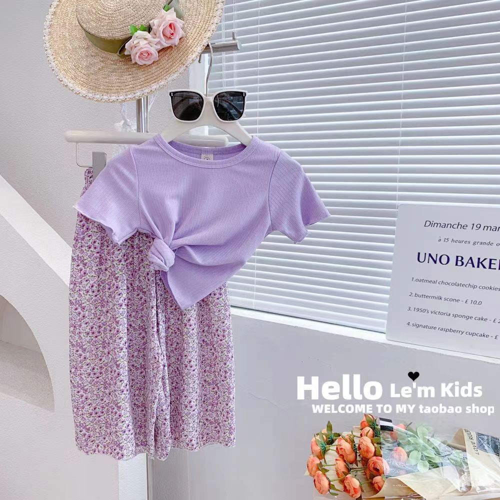 夏季新款女童田园风糖果色冰凉休闲潮防蚊防晒轻薄度假碎花直筒裤
