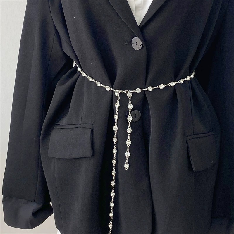 腰链女士装饰细腰带简约配连衣裙银色镶钻珍珠铁链时尚小皮带裙带