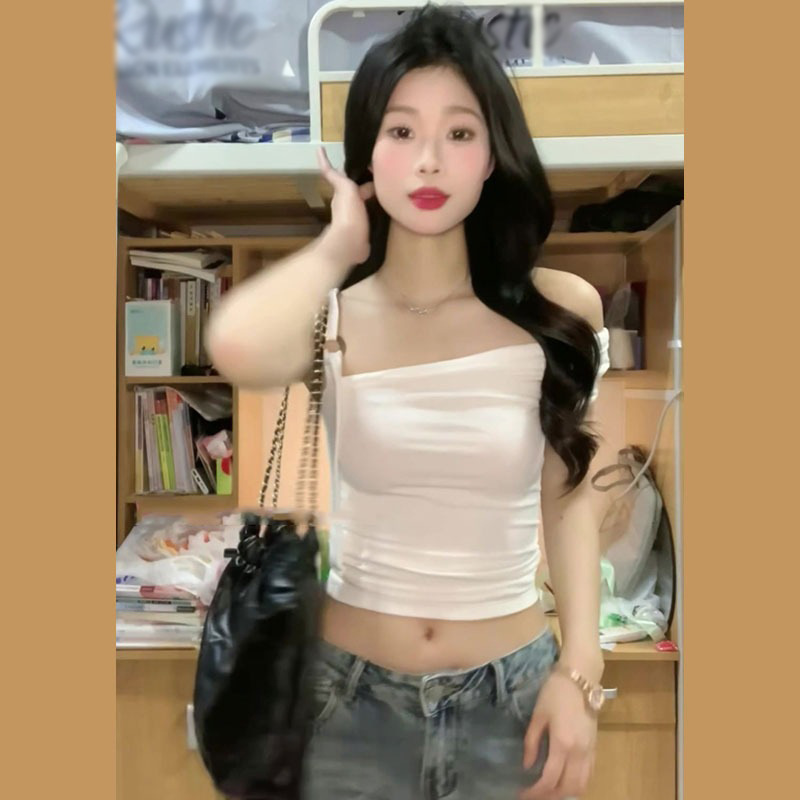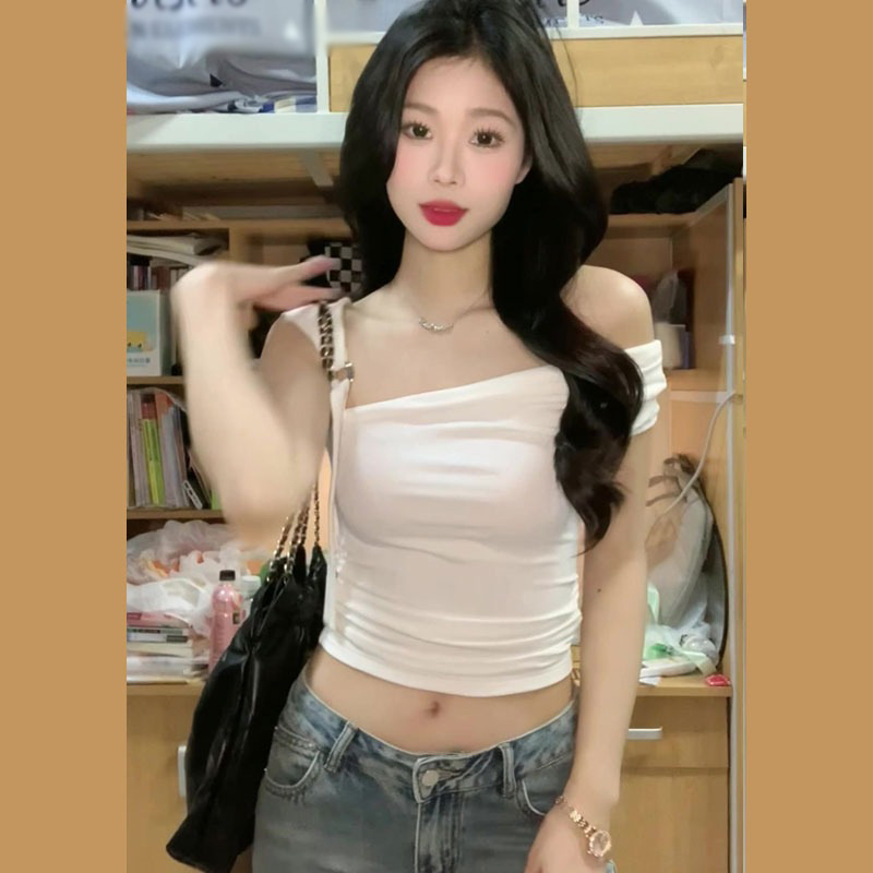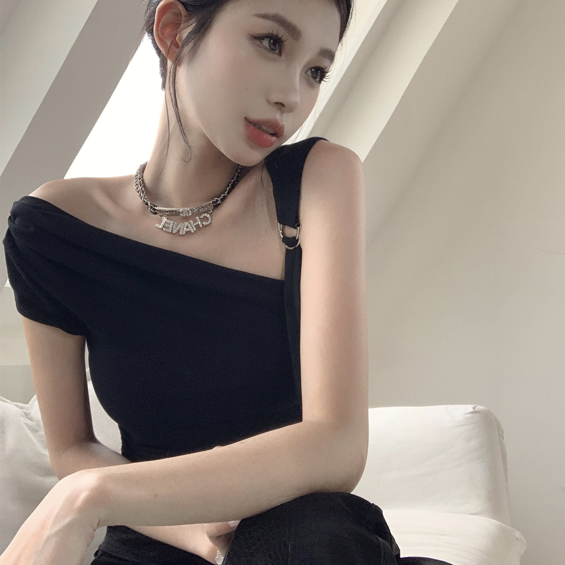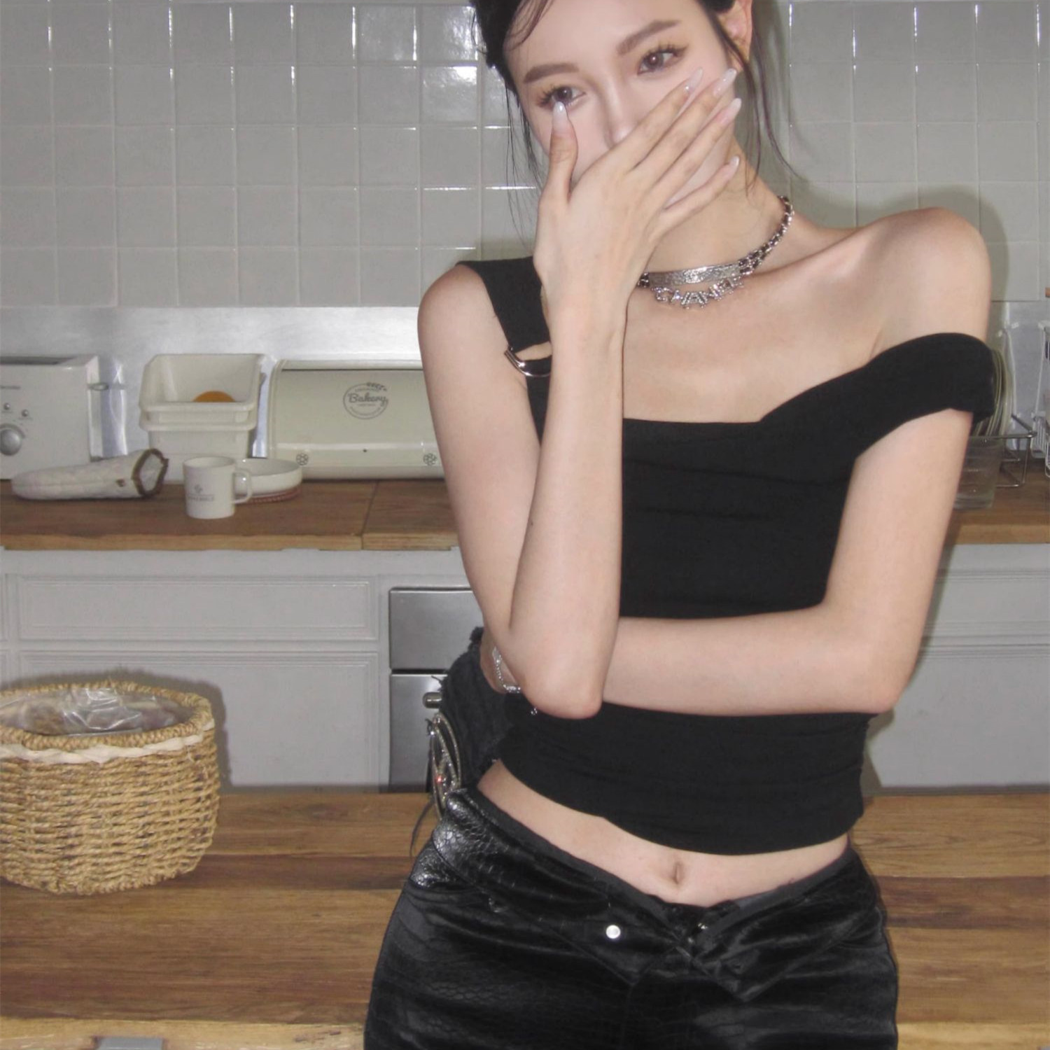 锁骨性感辣妹t恤女2025新款设计感小众纯欲风短款露肩一字肩上衣