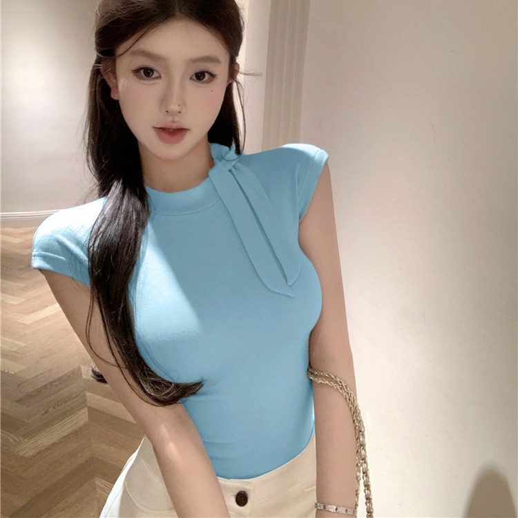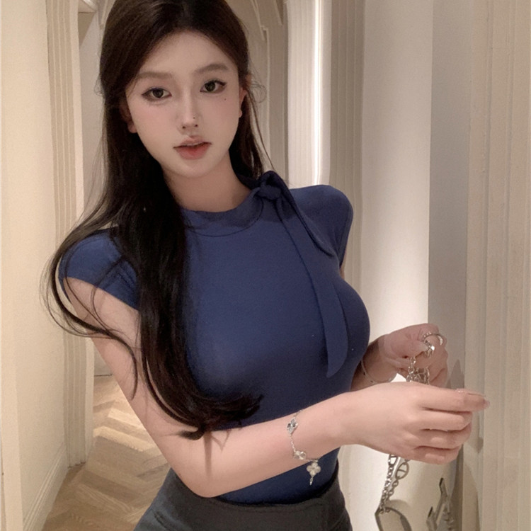 绑带短袖T恤女2025新款爆款修身辣妹别致绝美紧身内搭上衣欧货夏