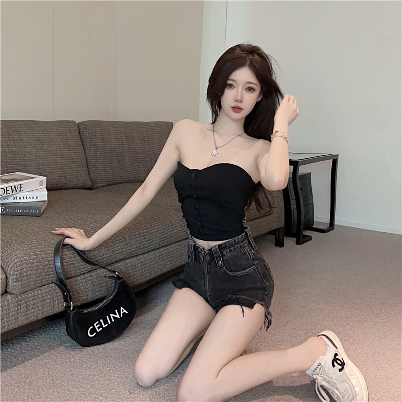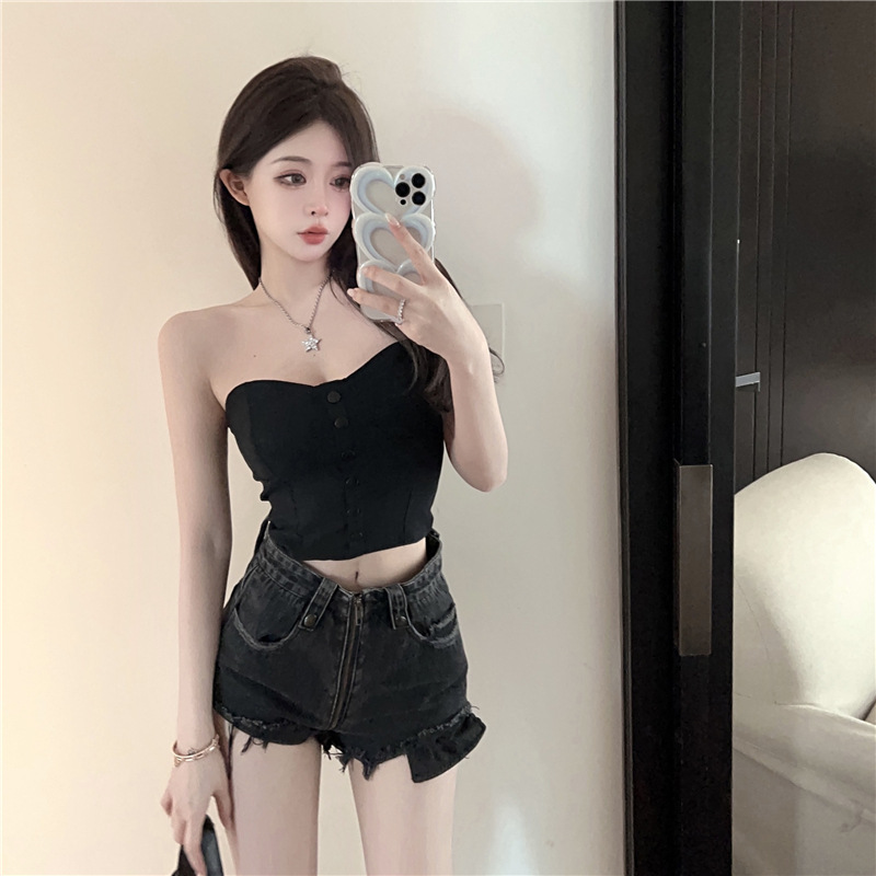 蹦迪女装夏修身性感黑色抹胸背心女无肩带辣妹打底衫露脐短款上衣