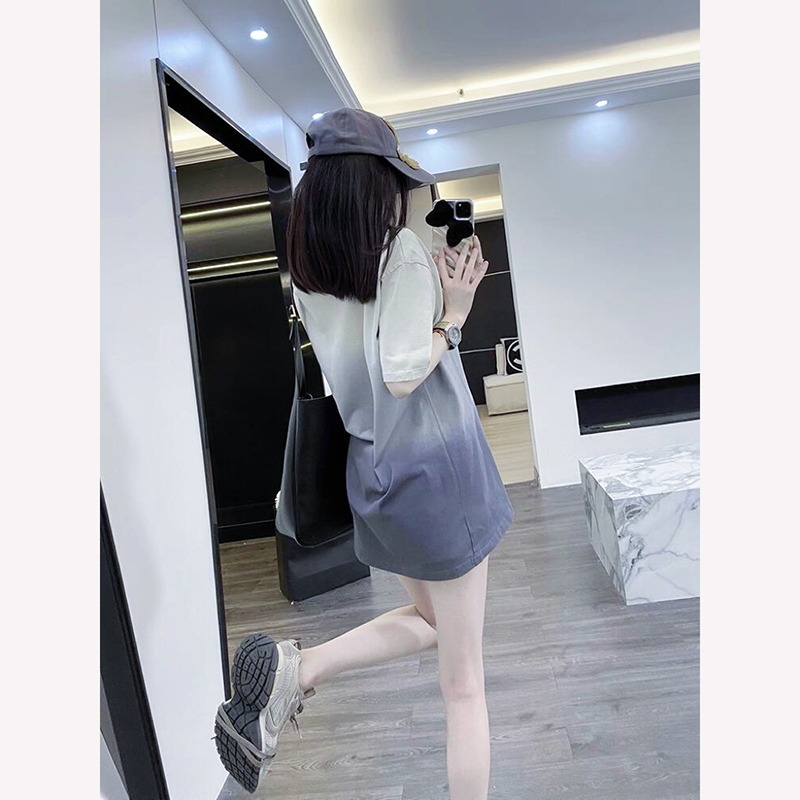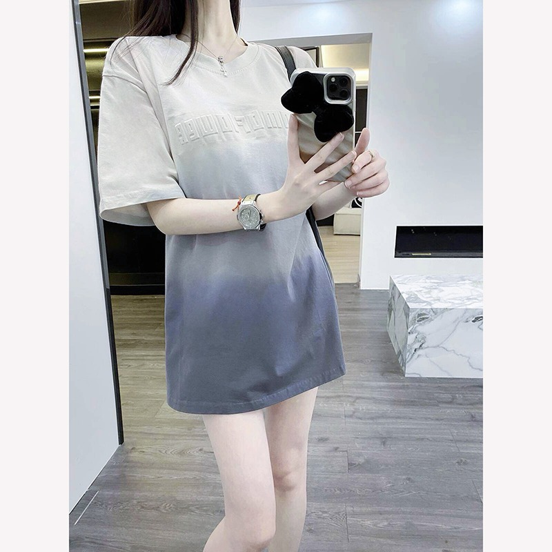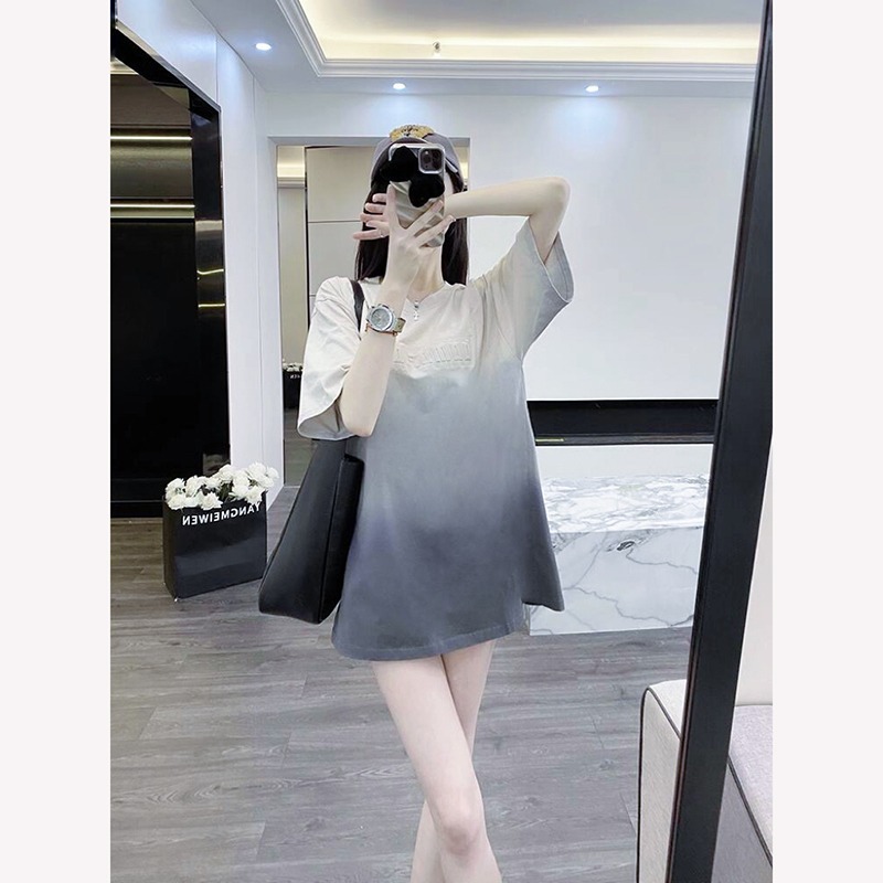 棉质渐变色夏季短袖t恤女2025新款爆款洋气时髦宽松慵懒风上衣潮