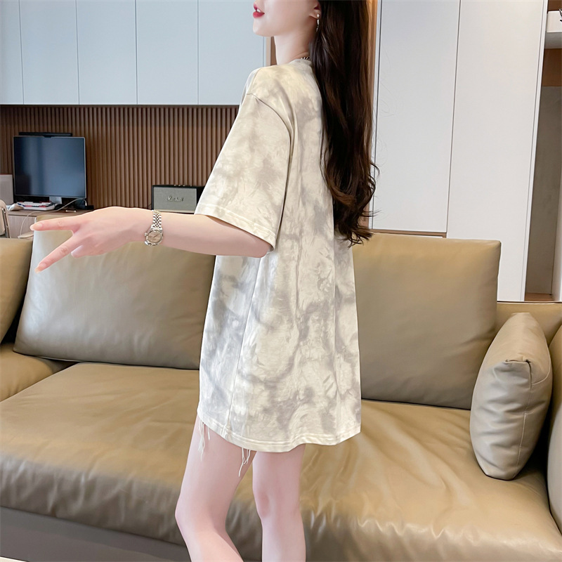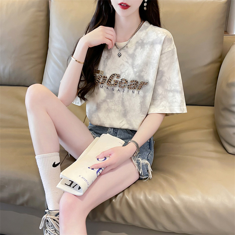 重工烫钻宽松短袖t恤女2025新款爆款洋气时髦扎染美式欧货夏装潮