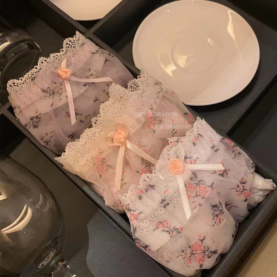 初恋的感觉 微商日系碎花风小清新少女网纱蕾丝边女士三角裤
