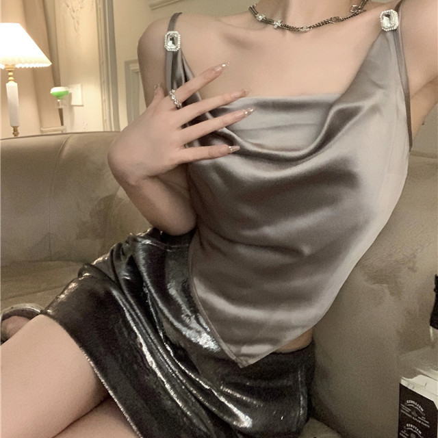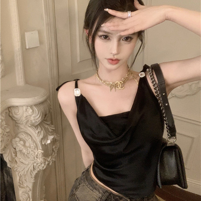 缎面吊带背心女外穿夏季纯欲辣妹性感无袖上衣设计感小众欧货