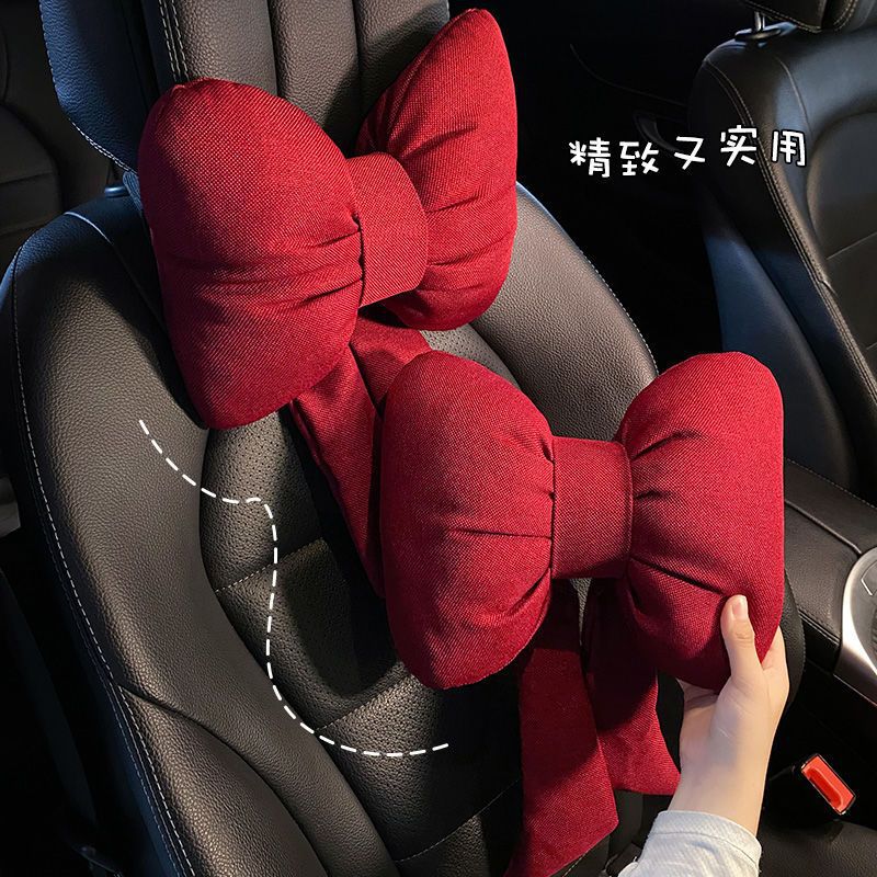 汽车头枕护颈枕蝴蝶结座椅颈椎枕一对车载枕头靠颈枕车枕