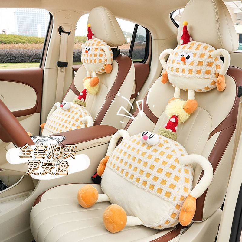 汽车头枕腰靠毛绒小怪兽萌趣多巴胺车载颈靠枕可爱卡通车载护颈枕