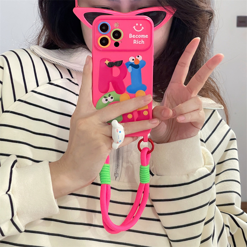 个性RICH英文卡通适用iphone15Promax苹果14手机壳13挂绳11女12软