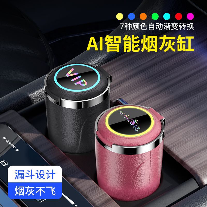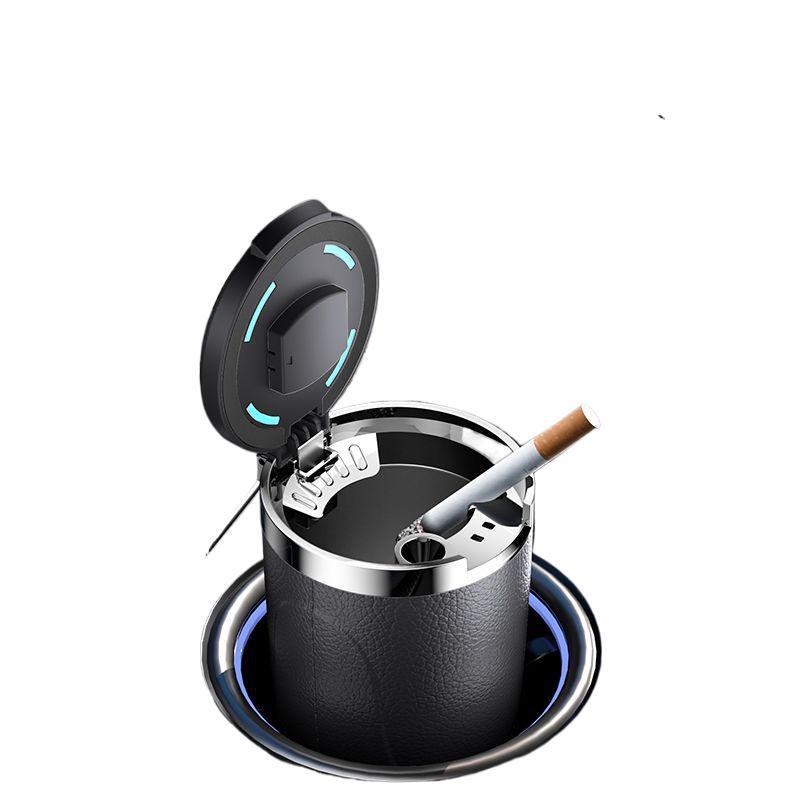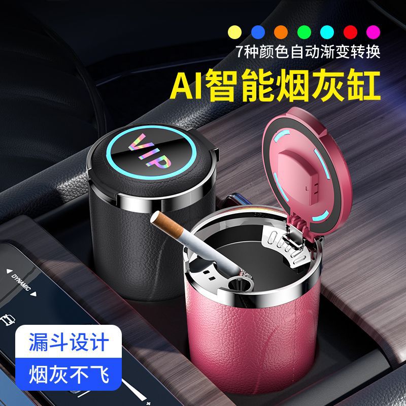 车载烟灰缸有盖金属不锈钢多功能带灯车内夜光汽车内用品