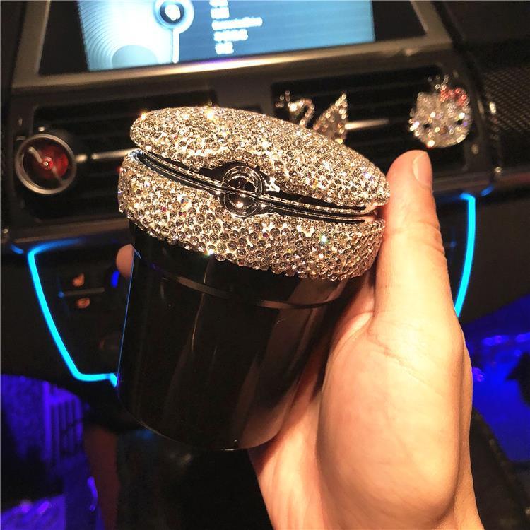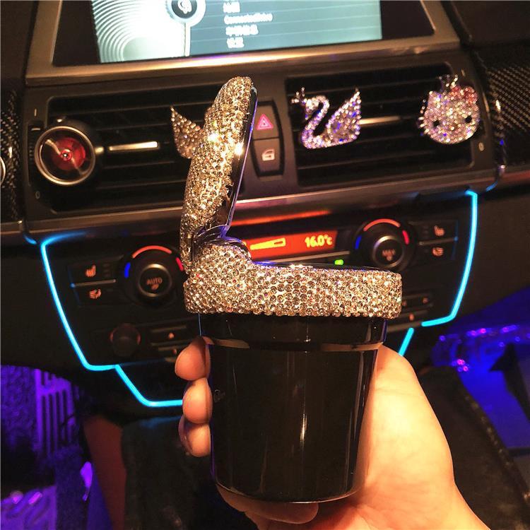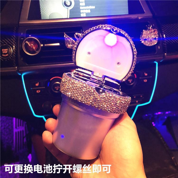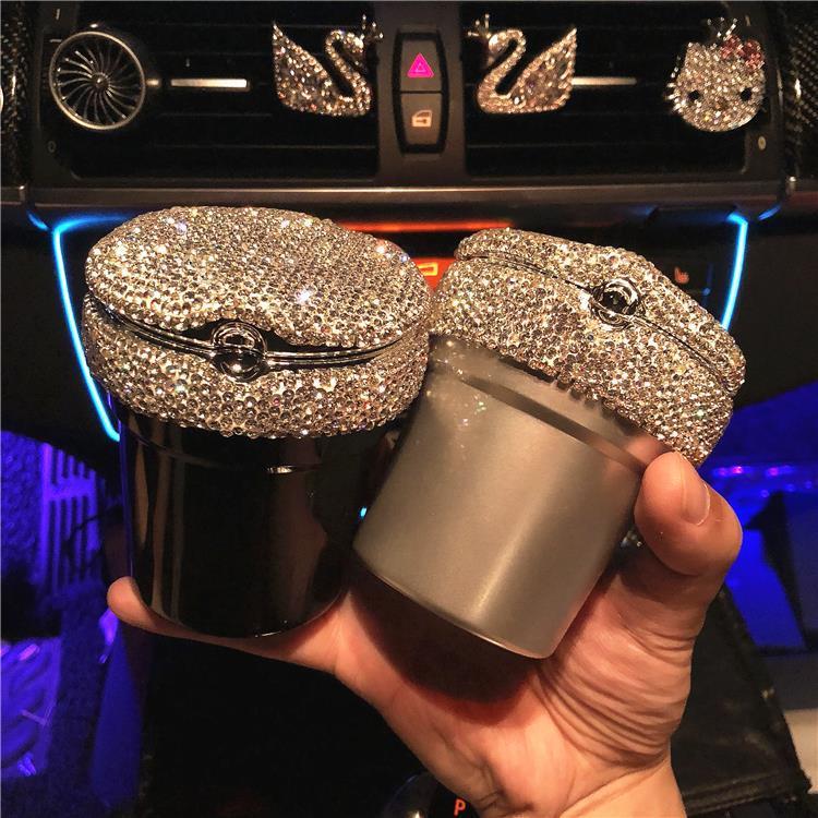 汽车车载烟灰缸灯满天星水晶镶钻置物筐垃圾桶杂物篓车载装饰