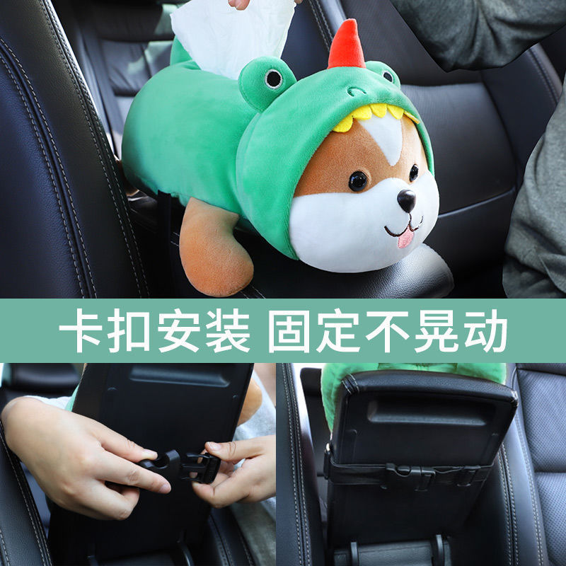 创意车载扶手箱纸巾盒抽卡通可爱汽车抽纸盒挂式车内装饰用品