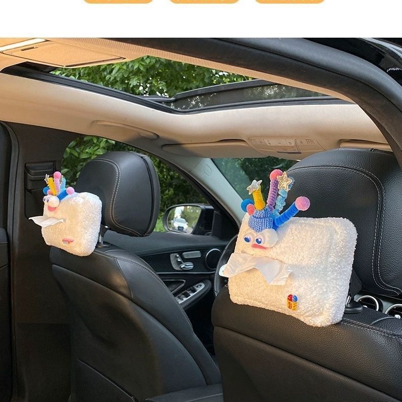 车载纸巾盒车内纸抽挂式装饰品纸抽盒创意可爱毛绒车载抽纸盒