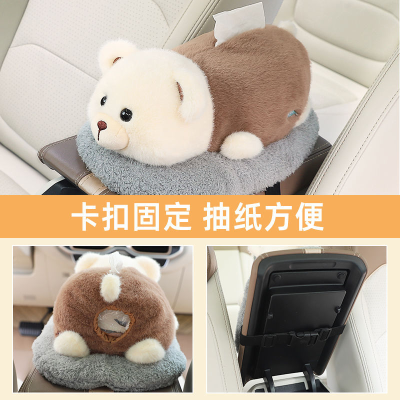 车载纸巾盒扶手箱抽纸盒创意汽车竹炭包摆件感公仔车内装饰品