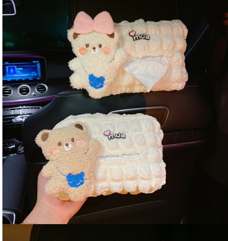 【揹包女熊棕泡芙+座椅纸巾盒】-