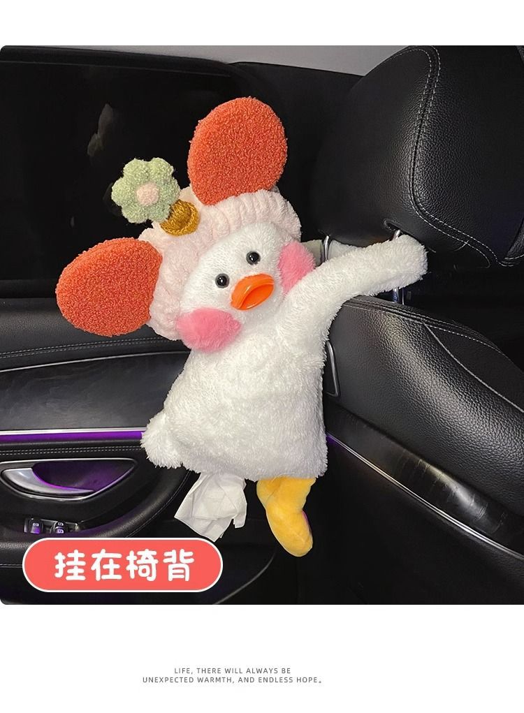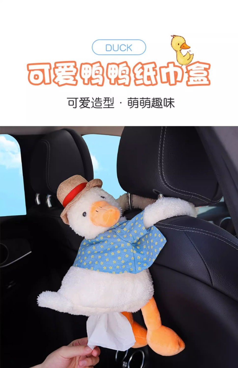 车载纸巾盒创意挂式可爱车内饰品个性鸭玩偶汽车抽纸盒