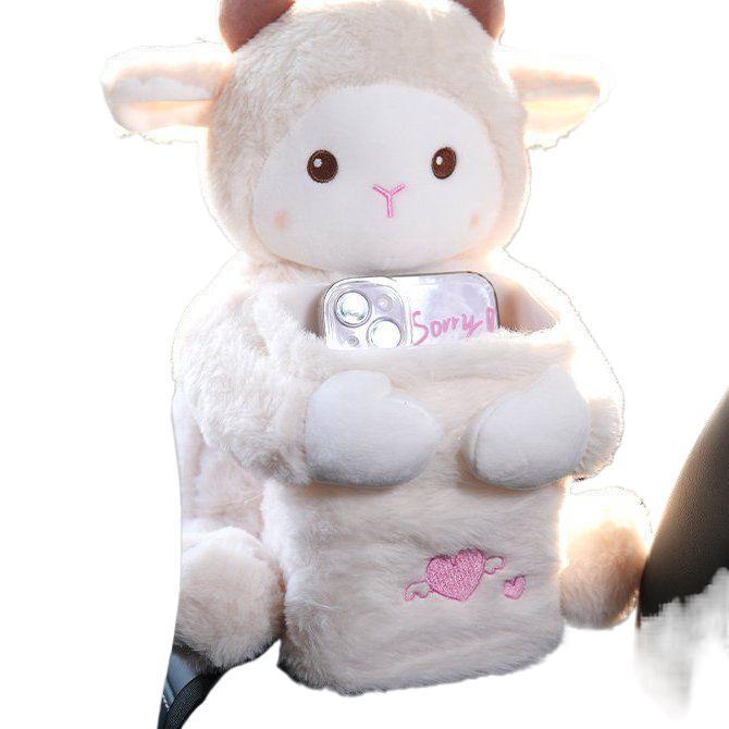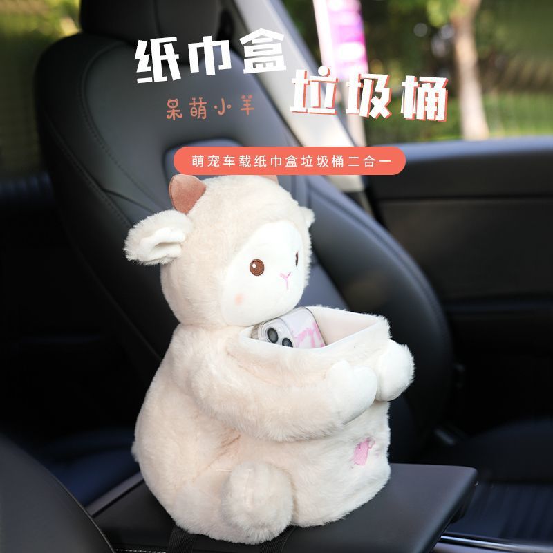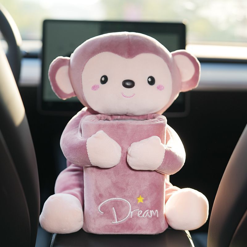 车内垃圾桶纸巾盒萌萌猴二合一抽纸盒可爱毛绒扶手箱装饰车载饰品