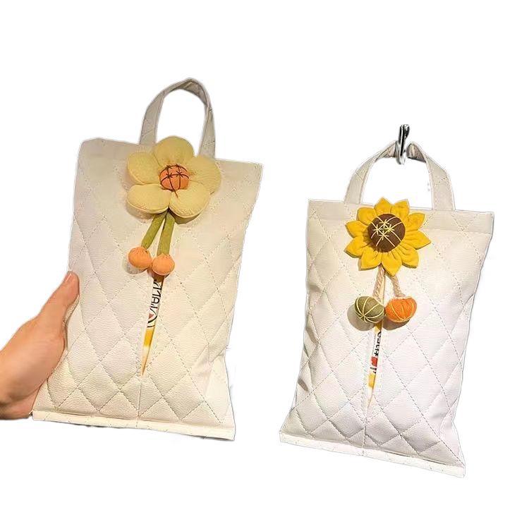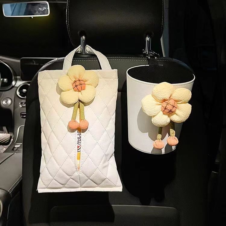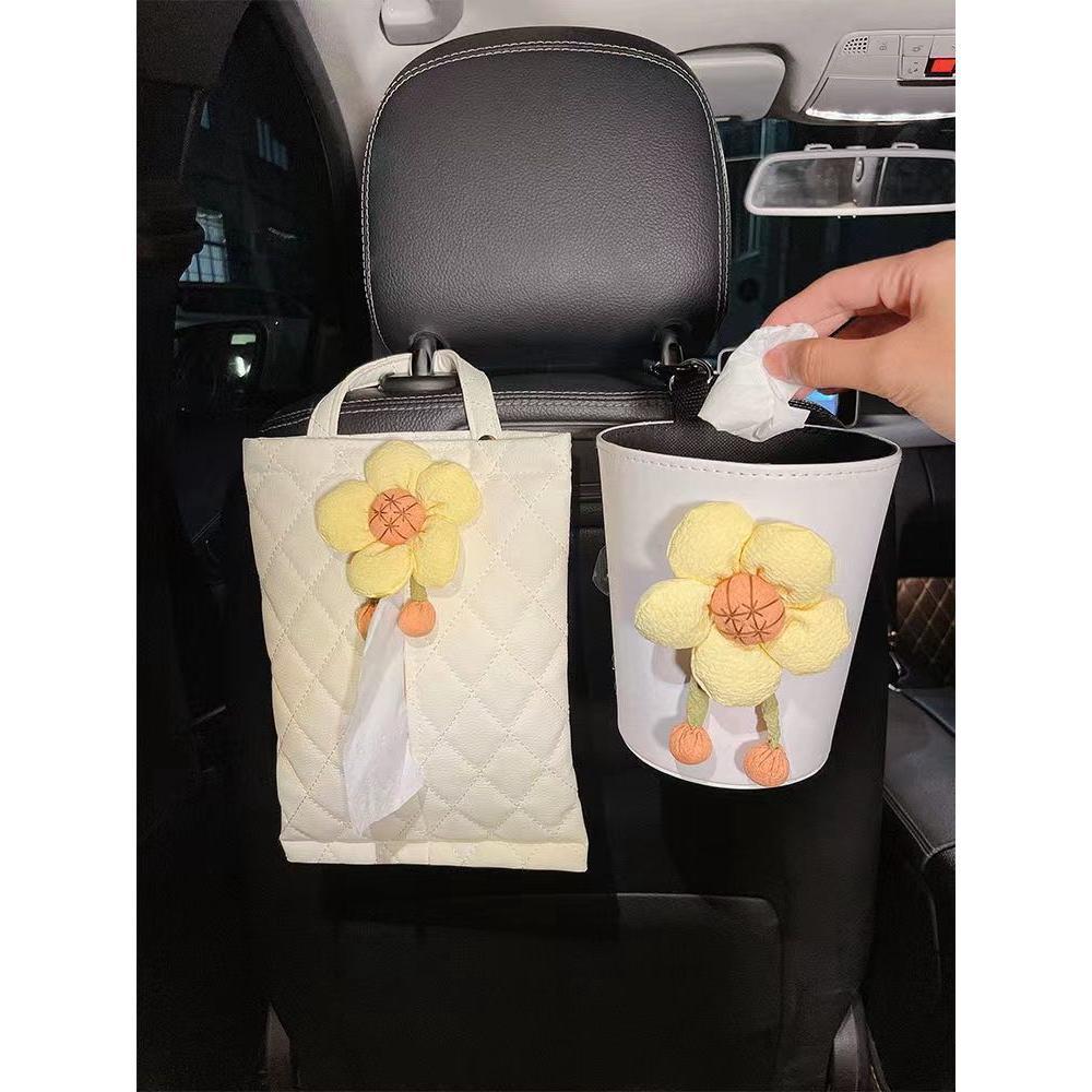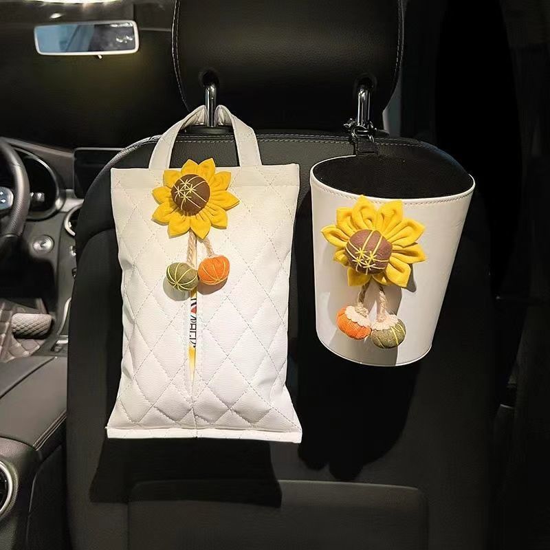车载纸巾盒卡通太阳花车用椅背挂式抽纸盒汽车垃圾桶收纳置物箱女