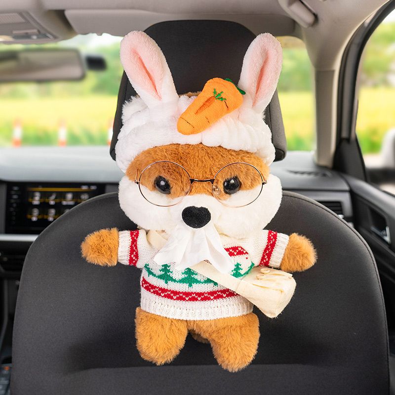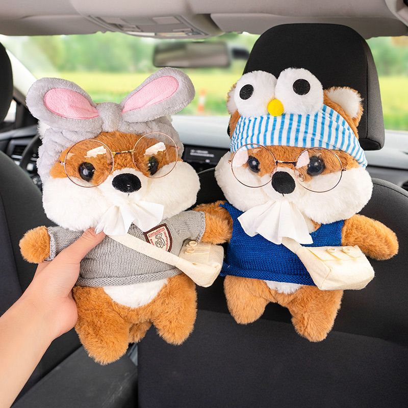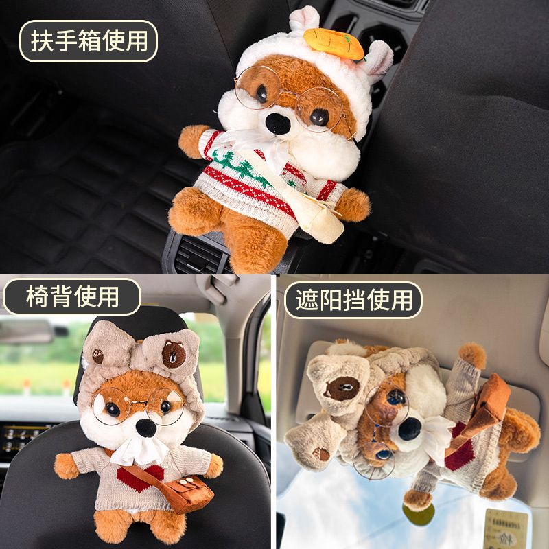 可爱车载纸巾盒挂式车内用装饰玩偶柴犬抽纸袋车内汽车座椅抽纸盒