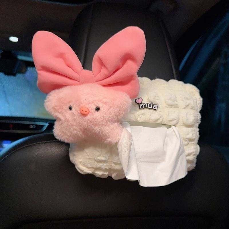 - 【粉星星猪+粉蝴蝶结】泡芙纸巾盒