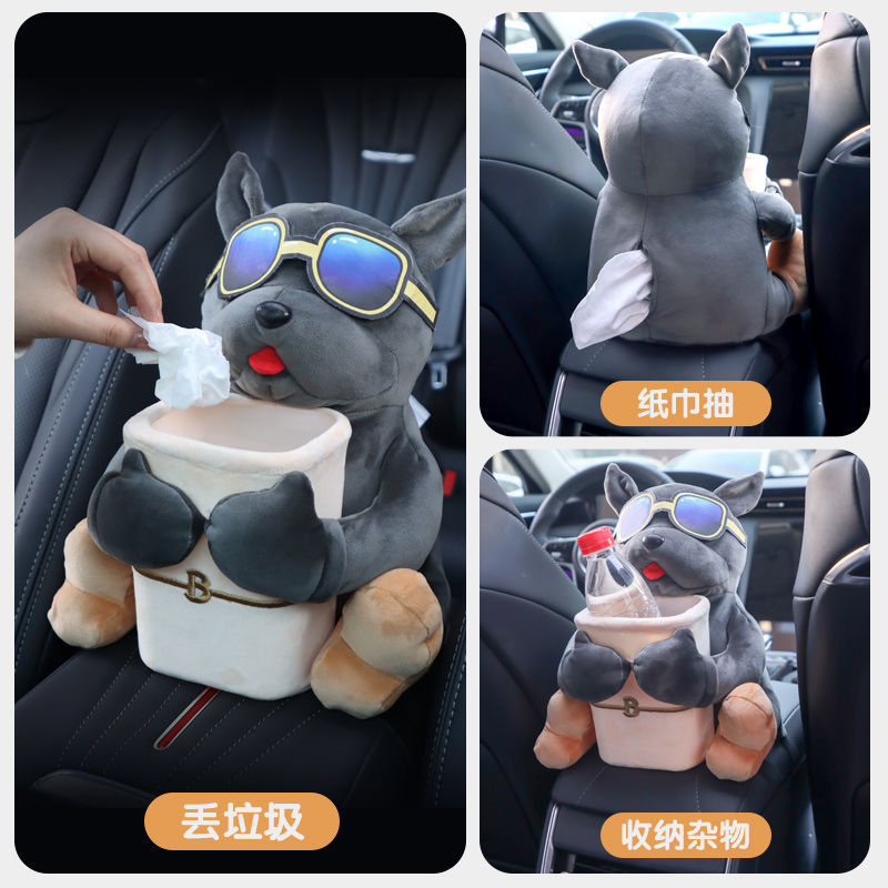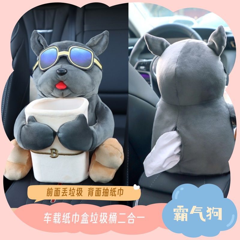 车载纸巾盒垃圾桶二合一社会狗多功能抽纸汽车扶手箱内饰用品