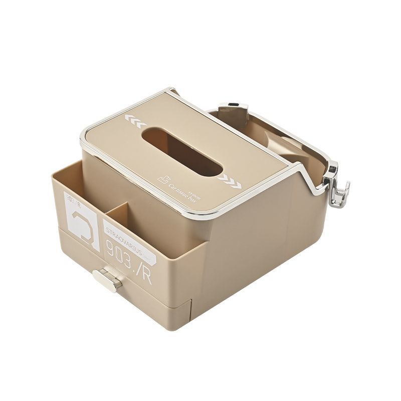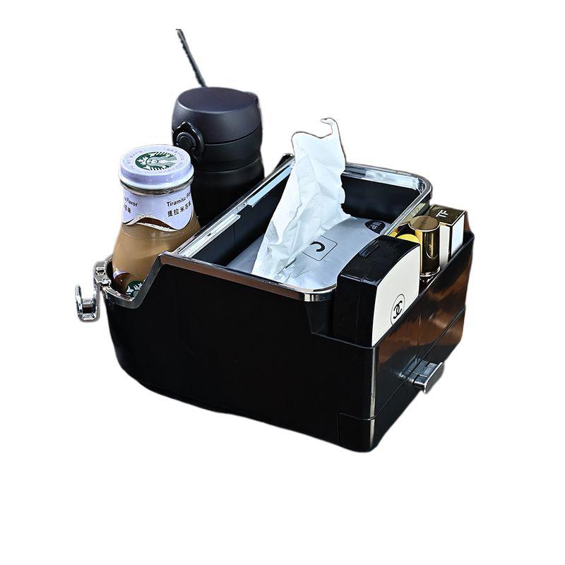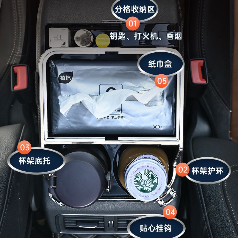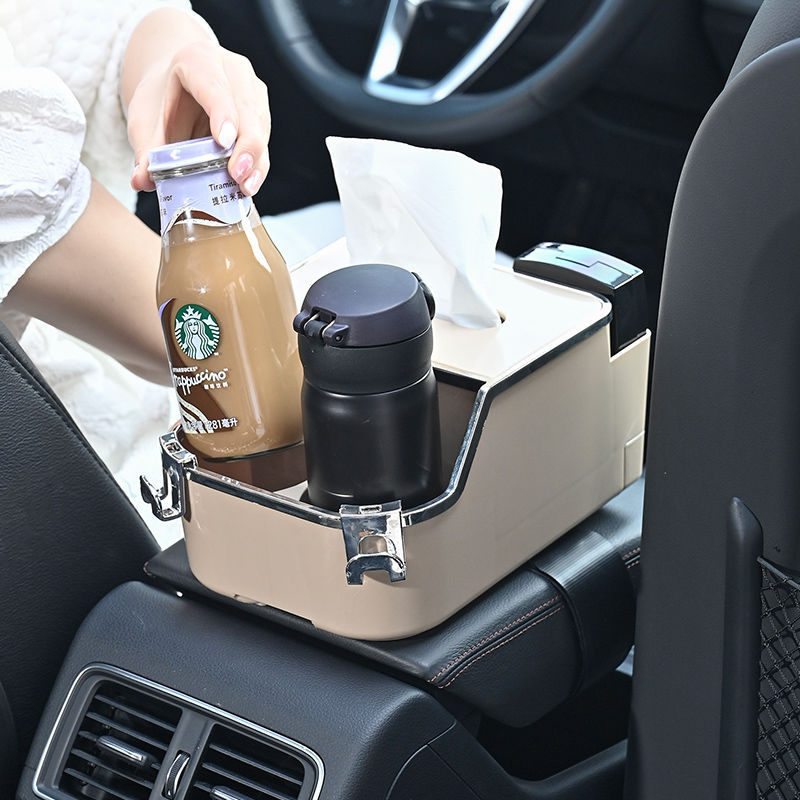 车载扶手箱纸巾盒带挂钩汽车手扶箱收纳水杯支架车内储物纸抽盒
