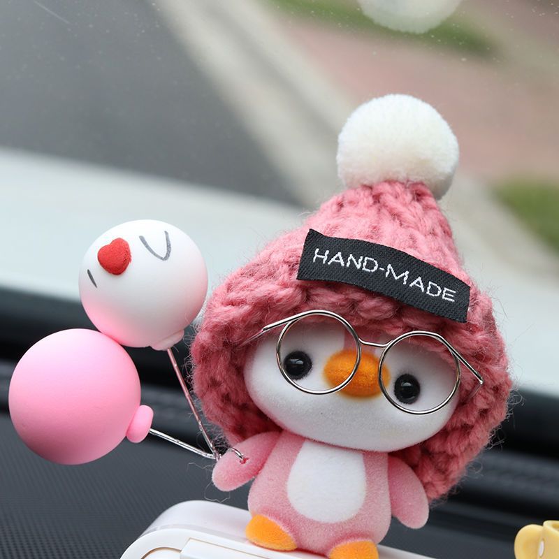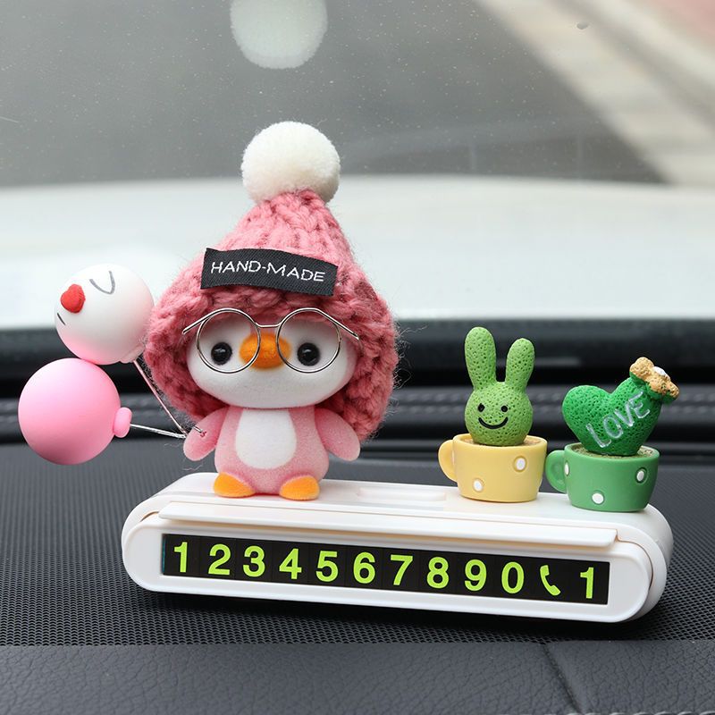粉帽企鹅+黑色停车牌+绿植