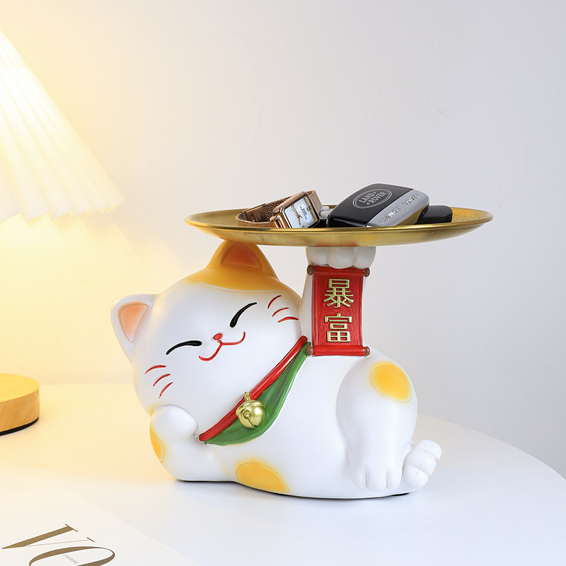 创意入户玄关鞋柜树脂猫咪托盘钥匙收纳置物架客厅桌面装饰摆件