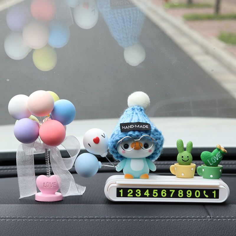 蓝帽企鹅+黑色停车牌+绿植