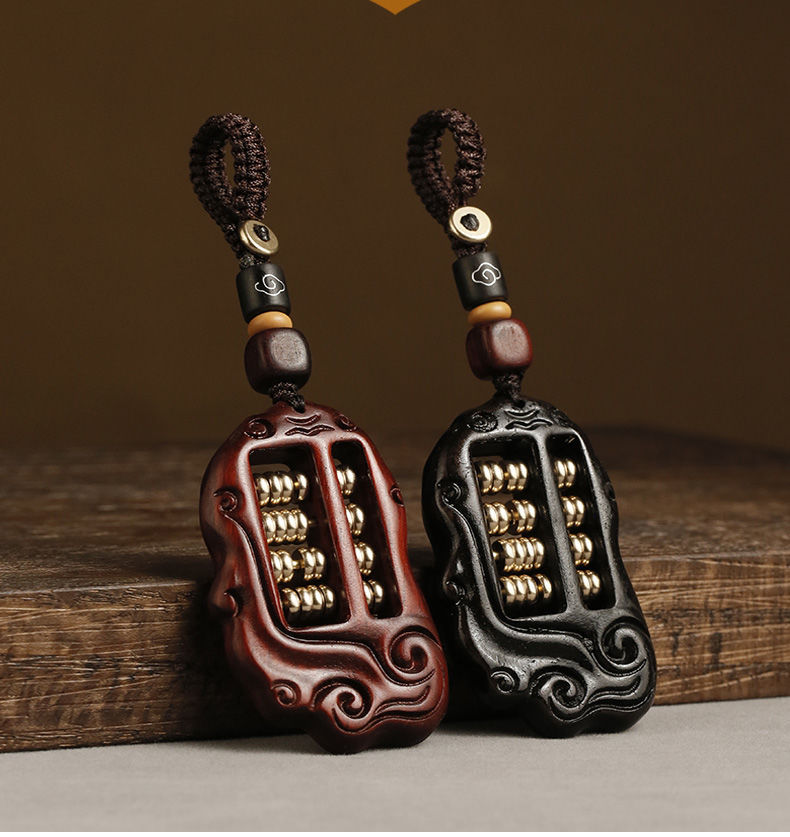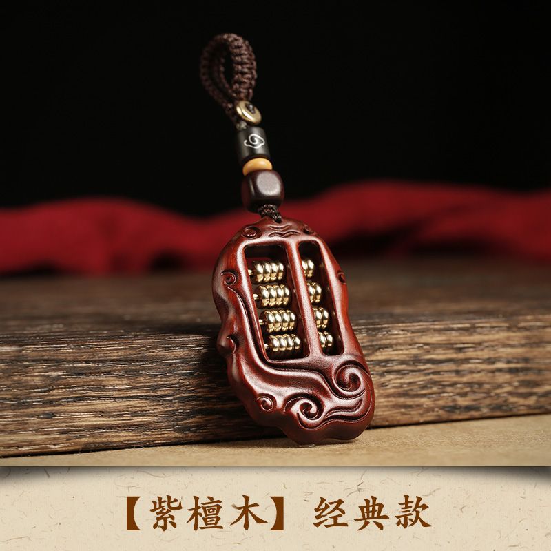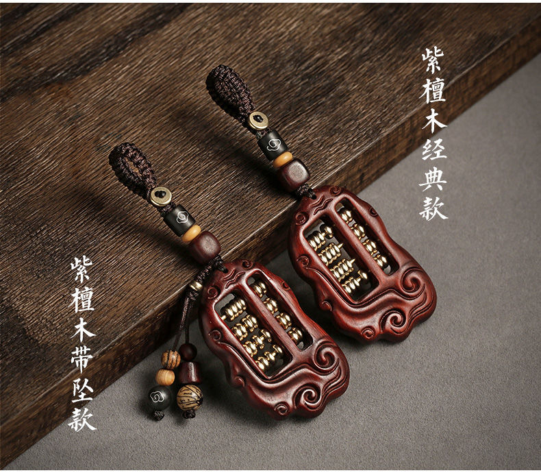 紫檀木如意算盘招财汽车钥匙挂件高挡创意男女钥匙扣个性情侣挂饰