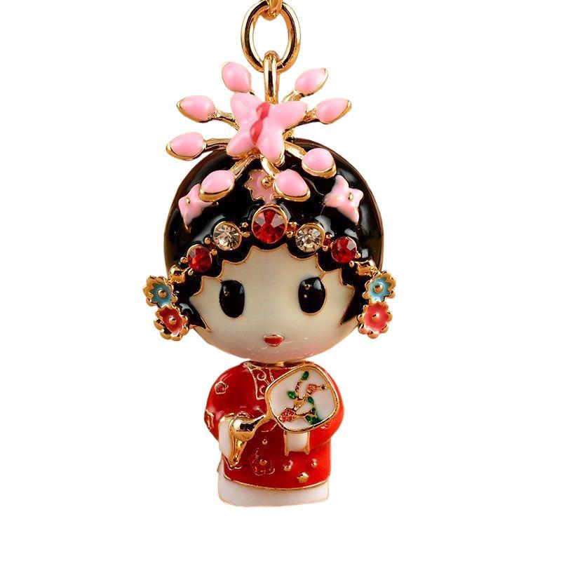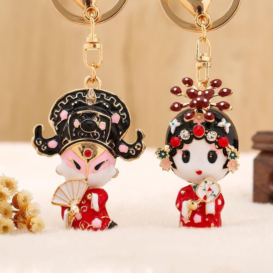 情侣款一对创意可爱男女花旦小生汽车钥匙扣链圈包挂件