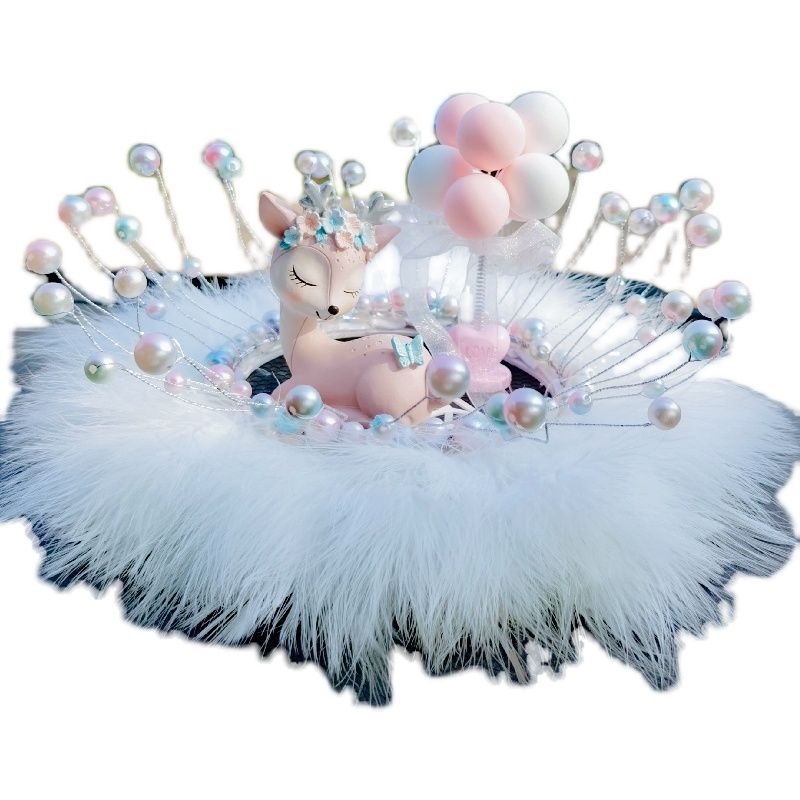 - 粉鹿+粉气球 +炫彩珠圆羽毛垫