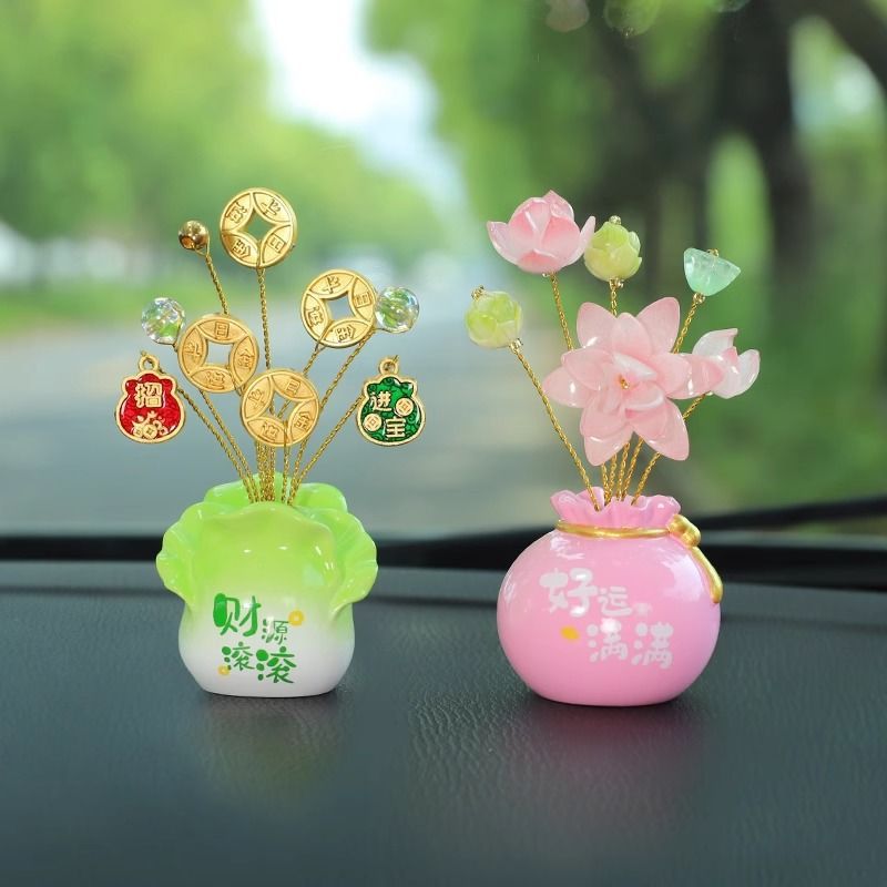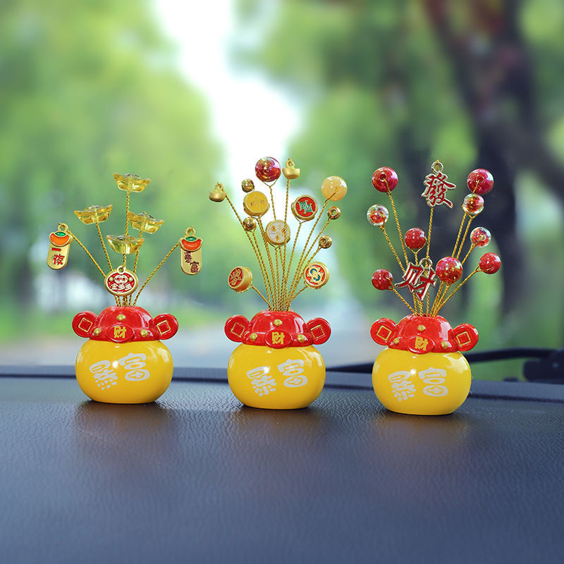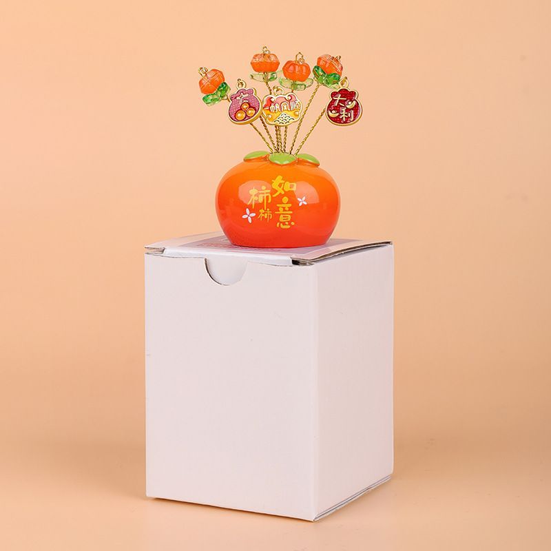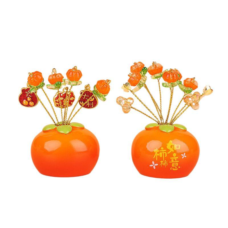 新中式事事如意柿子树盆栽摆件车载中控台装饰品百搭通用